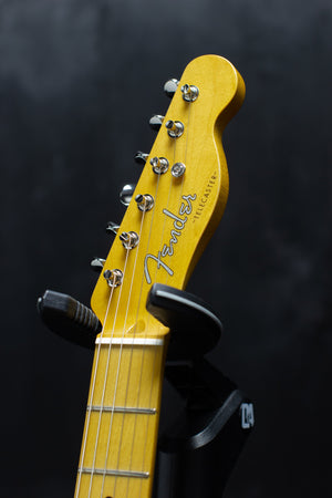The '50s Telecaster is equipped with a resonant basswood body and dual single-coil pickups voiced to replicate classic Tele tone. A 4-way switch allows players to quickly select each pickup individually or both pickups in either series or parallel wiring. A push-pull pot on the tone control allows players to flip the pickups in and out of phase in switch positions 2 and 4. The Soft "V"-shaped maple neck has a silky-smooth satin finish and plays effortlessly thanks to the 9.5" radius maple fingerboard and medium jumbo frets.