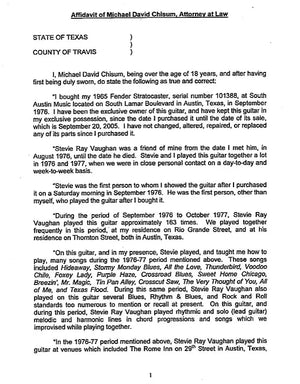 The instrument carries the same specification as several of Stevie Ray Vaughan's most Famous and iconic vintage Stratocasters