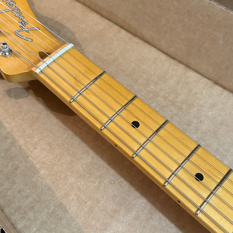 The Vintera® II '50s Nocaster® features an alder body and a maple neck for classic Telecaster® tone that's full of punch and clarity. The Early-'50s thick "U"-shape neck has thick shoulders for an authentic feel and tone, while the 7.25" radius fingerboard with vintage-tall frets provide vintage comfort with ample room for big bends and expressive vibrato. Under the hood, you'll find a pair of vintage-style '50s pickups that deliver all the crystal-clear chime and raw, steely twang that made Fender famous. The vintage-style 3-saddle bridge with barrel brass saddles offers authentic '50s twang, while vintage-style tuning machines provide classic looks with a finer gear ratio and enhanced tuning stability to complete the package.