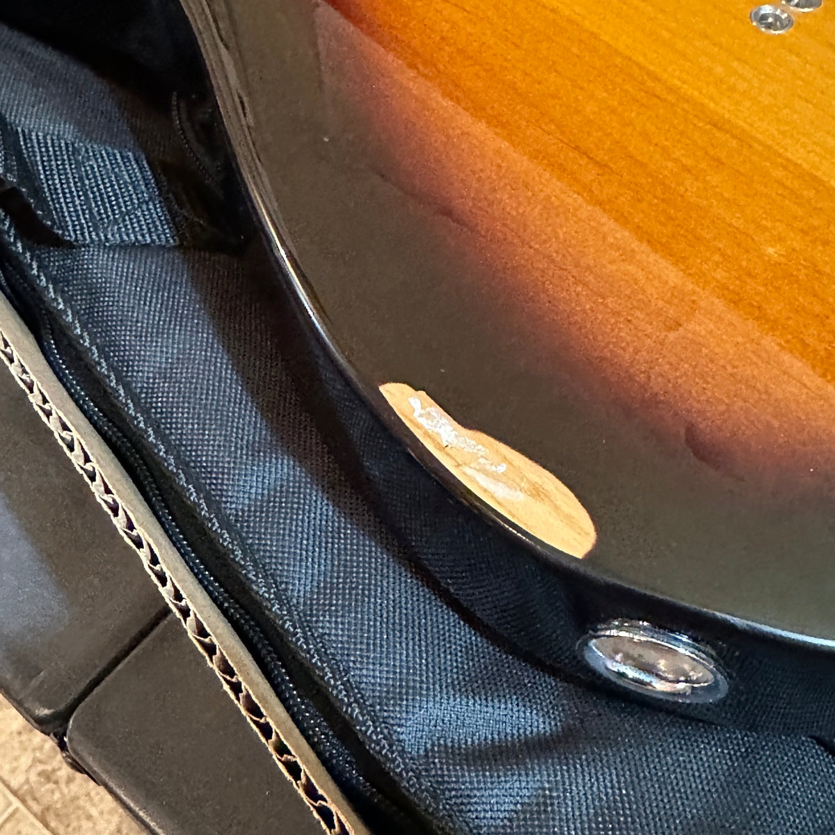 This instrument is in excellent, near mint condition. It has a finish chip repaired on the back edge( see pics) The area was re-clear coated and buffed smooth to prevent any further flaking. The techs found no other issues and it has little to no play wear. It looks, plays and sounds great! It still has protective cellophane on the pick-guard. Please see pictures for overall condition of the guitar. The actual item for sale is shown in the photographs.