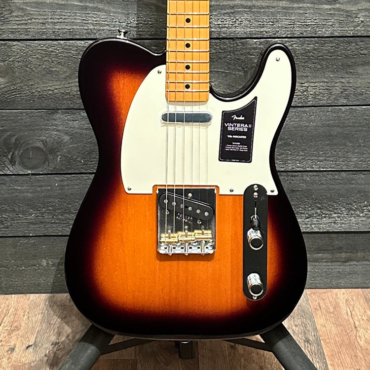 The Vintera® II '50s Nocaster® features an alder body and a maple neck for classic Telecaster® tone that's full of punch and clarity. The Early-'50s thick "U"-shape neck has thick shoulders for an authentic feel and tone, while the 7.25" radius fingerboard with vintage-tall frets provide vintage comfort with ample room for big bends and expressive vibrato. Under the hood, you'll find a pair of vintage-style '50s pickups that deliver all the crystal-clear chime and raw, steely twang that made Fender famous. The vintage-style 3-saddle bridge with barrel brass saddles offers authentic '50s twang, while vintage-style tuning machines provide classic looks with a finer gear ratio and enhanced tuning stability to complete the package.