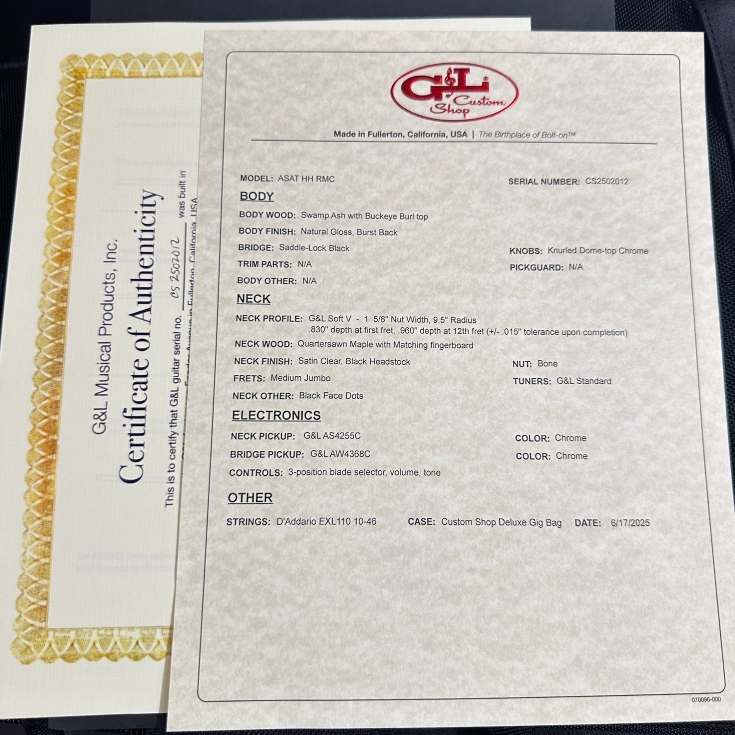 G&L USA Custom Shop ASAT HH Buckeye Burl Electric Guitar - Natural