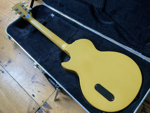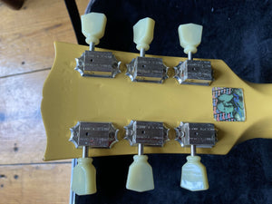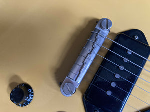 This model originally featured the Gibson Robot tuners but these have been replaced with the Grover Deluxe units you see in the pics. Single P90 pickup and volume and tone controls.