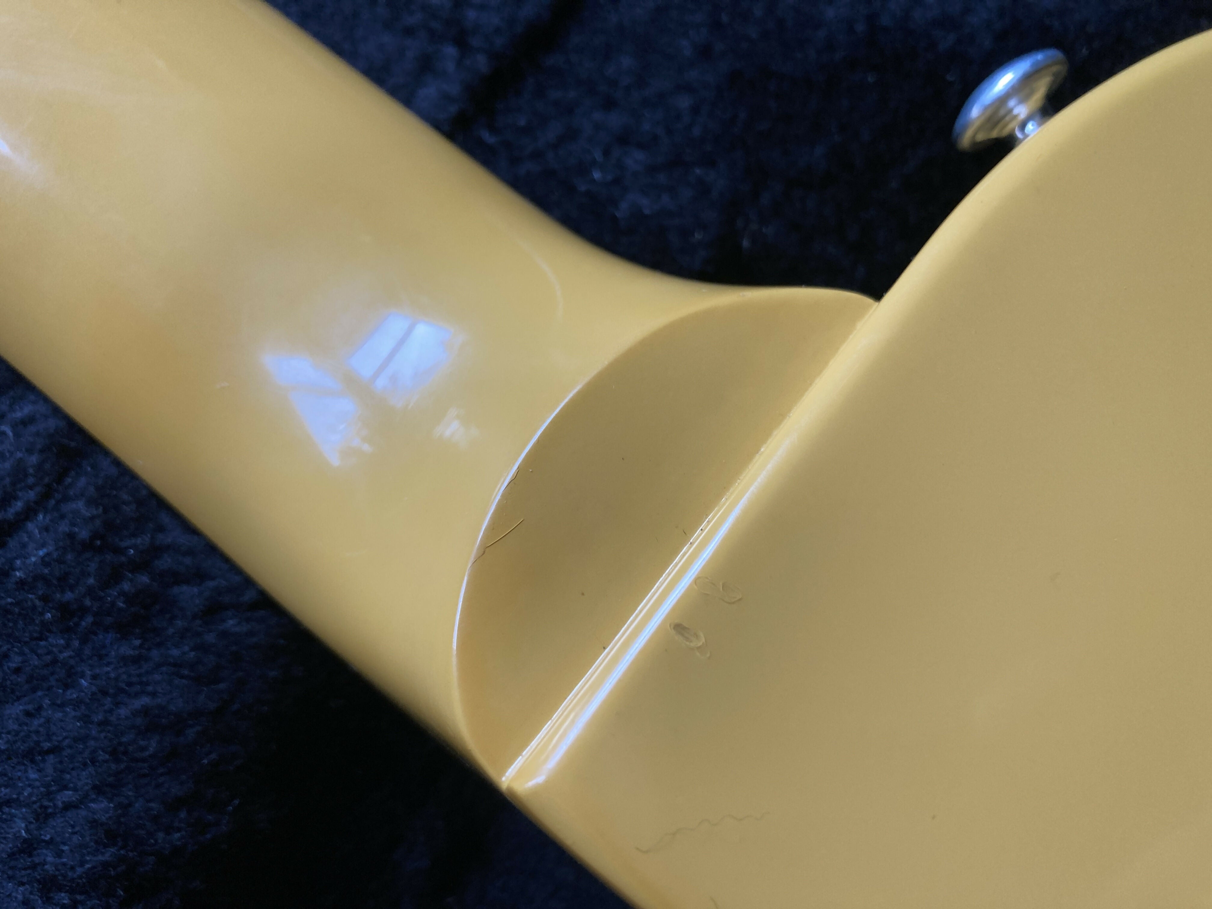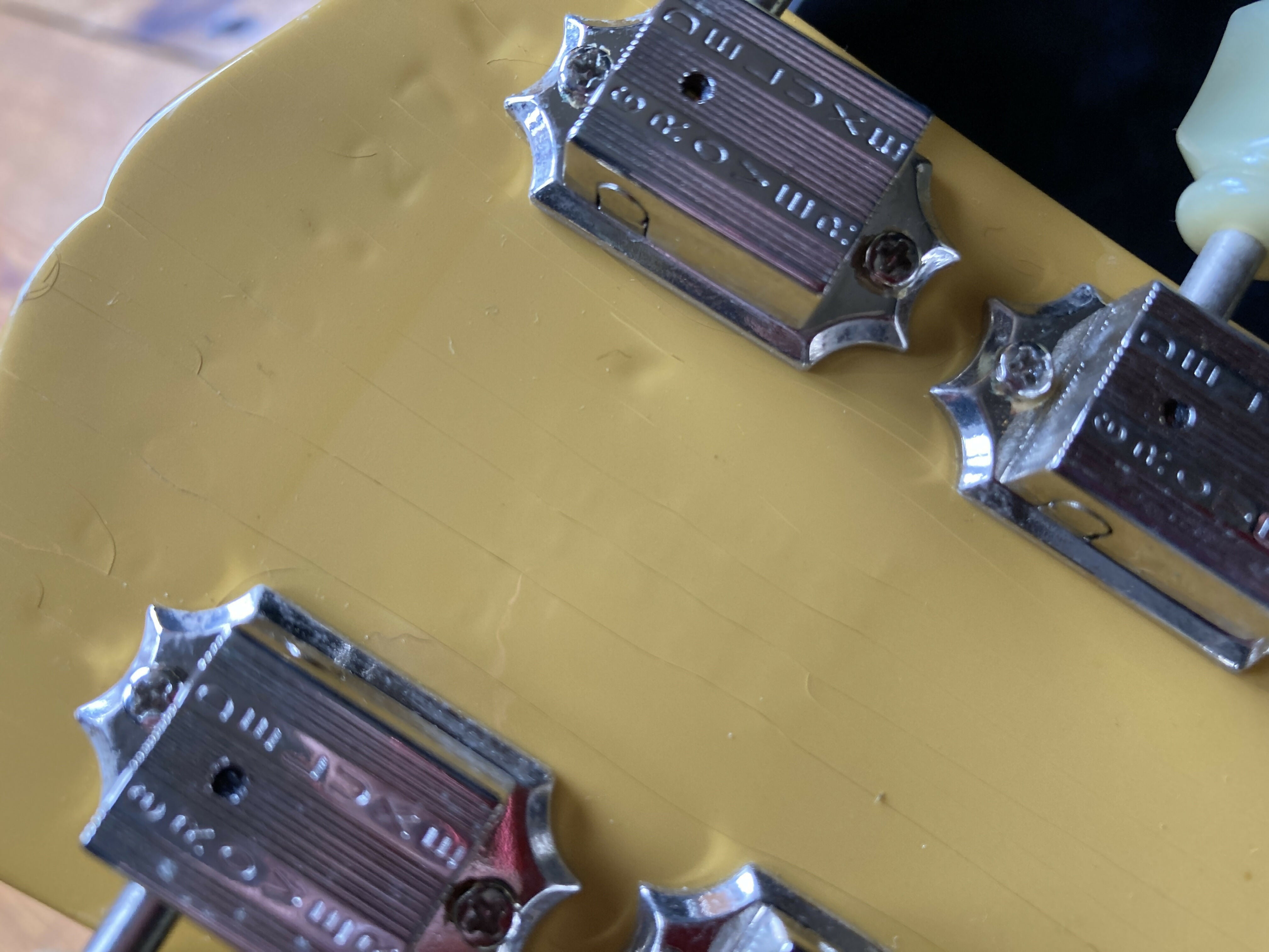 The finish on the back of the headstock is quite thick and the serial number is not easy to read but it is original and the hologram is present.There are linear finish cracks on the back of the headstock. There are minor chips to the finish around the headstock edges.