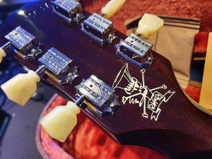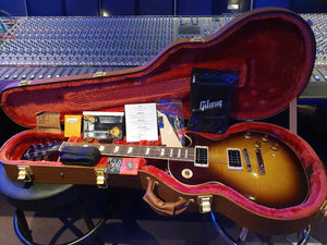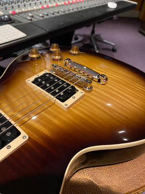 Gibson Slash November Burst Les Paul Standard Signature guitar BRAND NEW! We have three of these remaining! This limited edition Slash guitar features AAA flame top and a set of SlashBucker pickups. These dual uncovered pickups squeeze every last drop of sustain out of the Mahogany/Maple/Rosewood combo, with a healthy layer of sizzle that responds beautifully to the right amount of gain. The colour co-ordinated hardware has been designed to match each finish, with a subtle Nickel finish. Vintage Keystone tuners and the ABR-1 Tune-O-Matic bridge keep your tuning in check while looking the part. Final appointments include Slash’s signature on the back of the headstock and truss road cover, as well as an optional cream pickguard in the case.