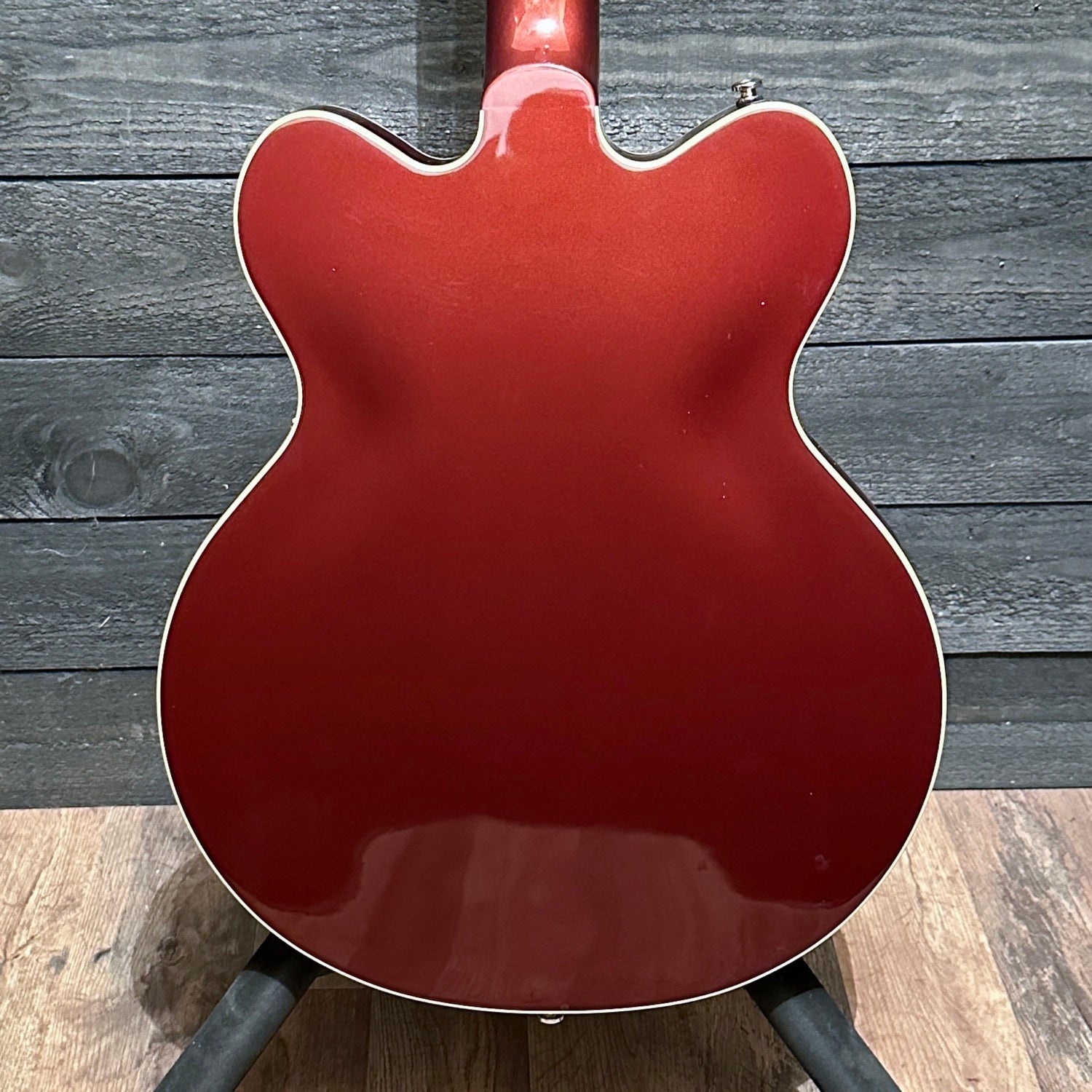 A chambered mahogany center block runs the length of the body, reinforcing the top while eliminating undesired feedback for volume-friendly performance on rocking stages. The Streamliner's sonic power is harnessed and shaped by the traditional control set - neck and bridge pickup volume controls, a master tone control, master volume control and three-way pickup switching.