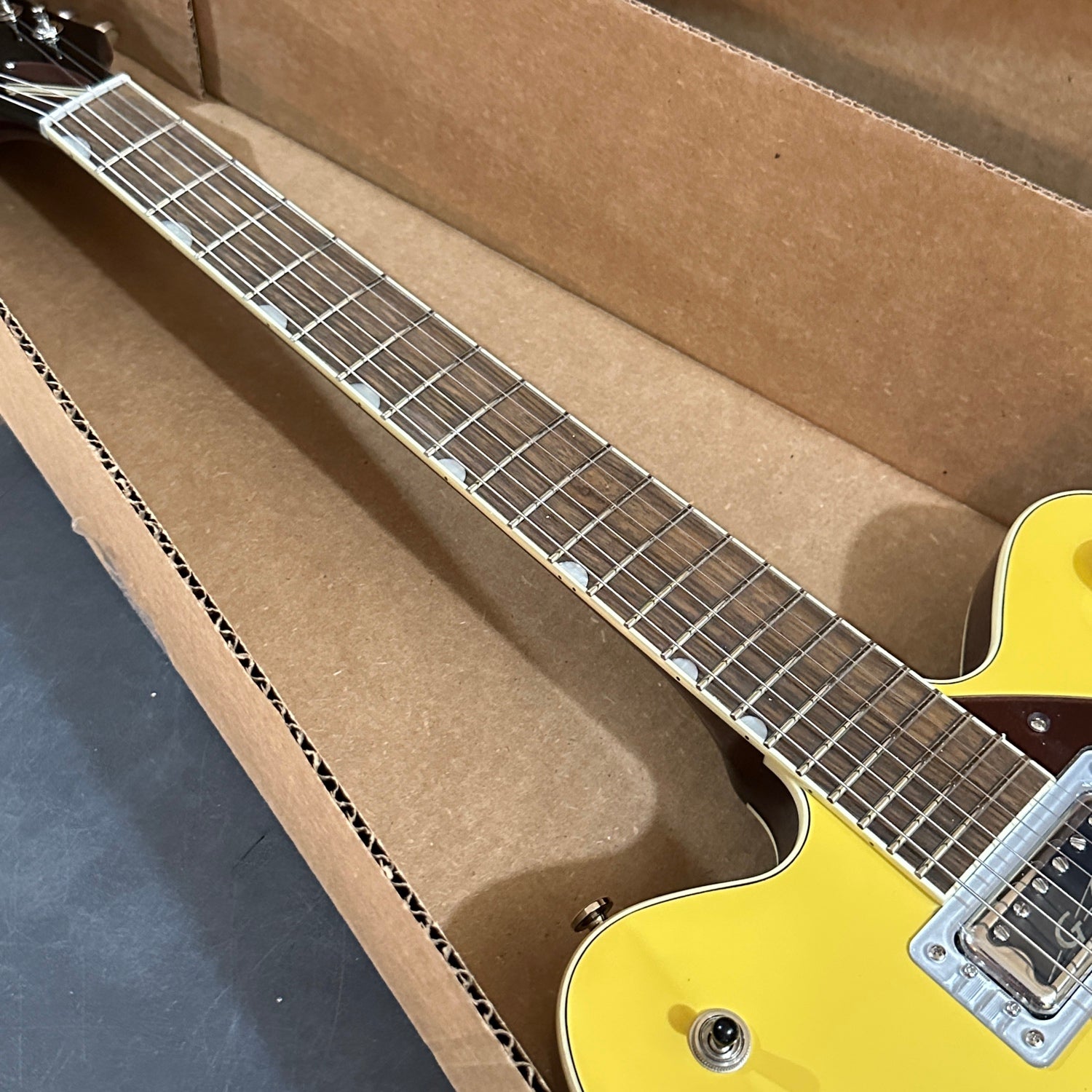 Classic retro style is here - new Gretsch G-Arrow radio control knobs, elegant aged white binding with black purfling, plexi pickguard and truss rod cover with vintage-style Rally striping, and arched laminated maple construction. Nearly impossible to put down once you pick it up and start playing, the G2604T has the updated sound and classic style that has earned Gretsch accolades since the dawn of rock 'n' roll.