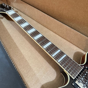We are an authorized dealer for brand approved manufacturer refurbished guitars. These guitars are sent directly from the manufacturer to the authorized refurbishing center where they are fully inspected, set up and cleared by a certified technician. They are sent there for many reasons, including: returns, cosmetic flaws, minor repairs, surplus & discontinued or last years models. The guitars serial number may be partially altered and/or replaced and the back of the headstock is lightly stamped "used" by the authorized refurbishing center per manufacturer agreements.