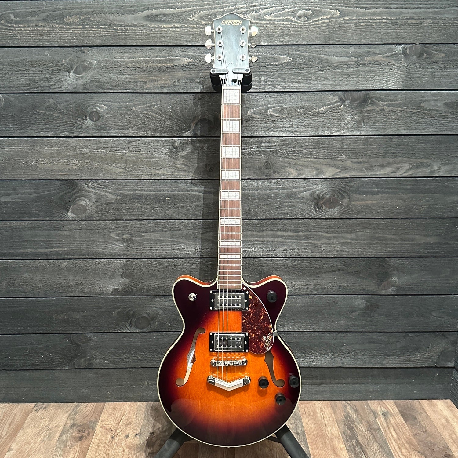 The G2655 Streamliner Center Block Jr. with V-Stoptail bursts into the modern era with powerful sound and style in a smaller package. The sleek G2655 is designed for the guitarist who demands more than the mundane from an instrument - more performance, more style and most importantly, more volume - while retaining everything you expect from a Gretsch.