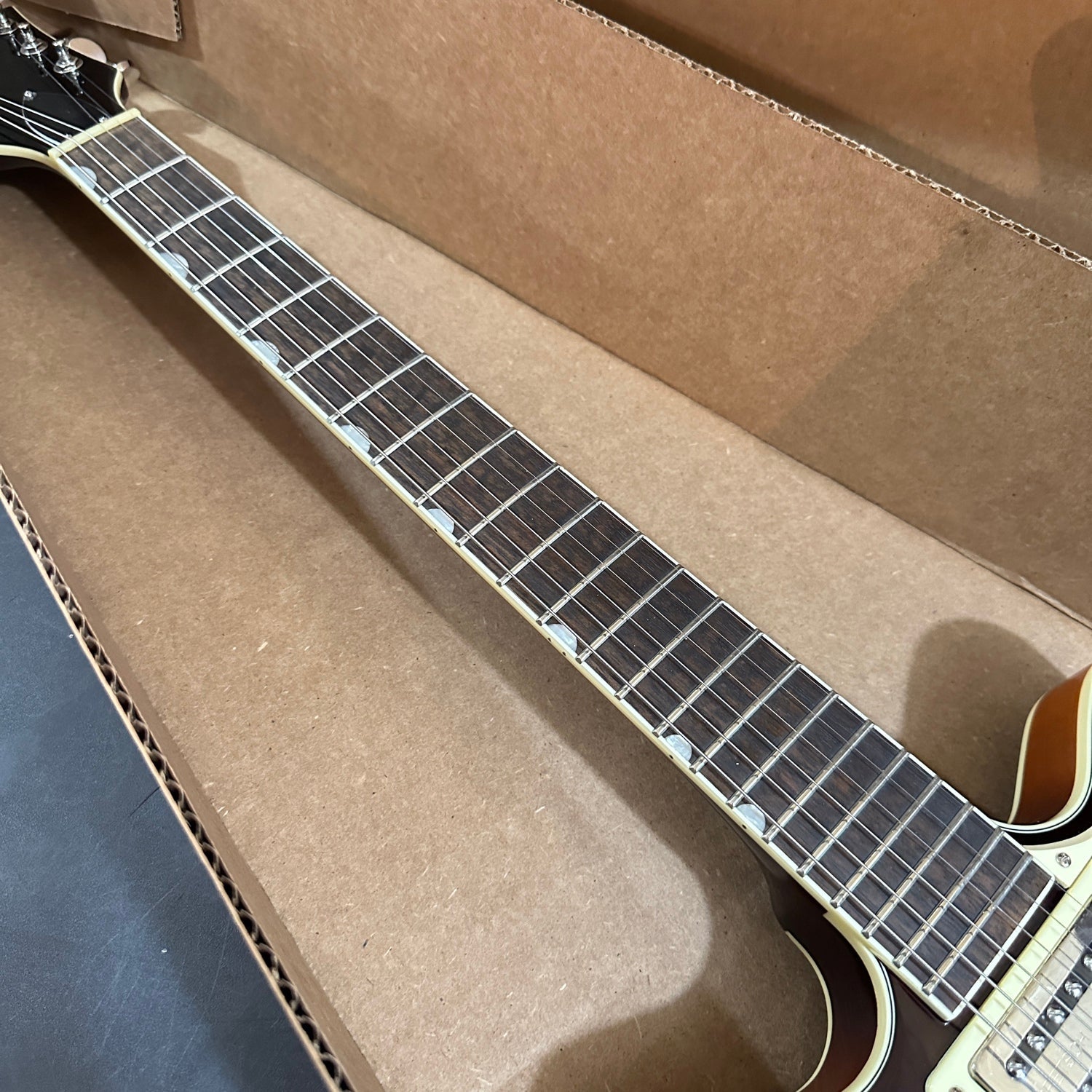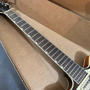 We are an authorized dealer for brand approved manufacturer refurbished guitars. These guitars are sent directly from the manufacturer to the authorized refurbishing center where they are fully inspected, set up and cleared by a certified technician. They are sent there for many reasons, including: returns, cosmetic flaws, minor repairs, surplus & discontinued or last years models. The guitars serial number may be partially altered and/or replaced and the back of the headstock is lightly stamped "used" by the authorized refurbishing center per manufacturer agreements.