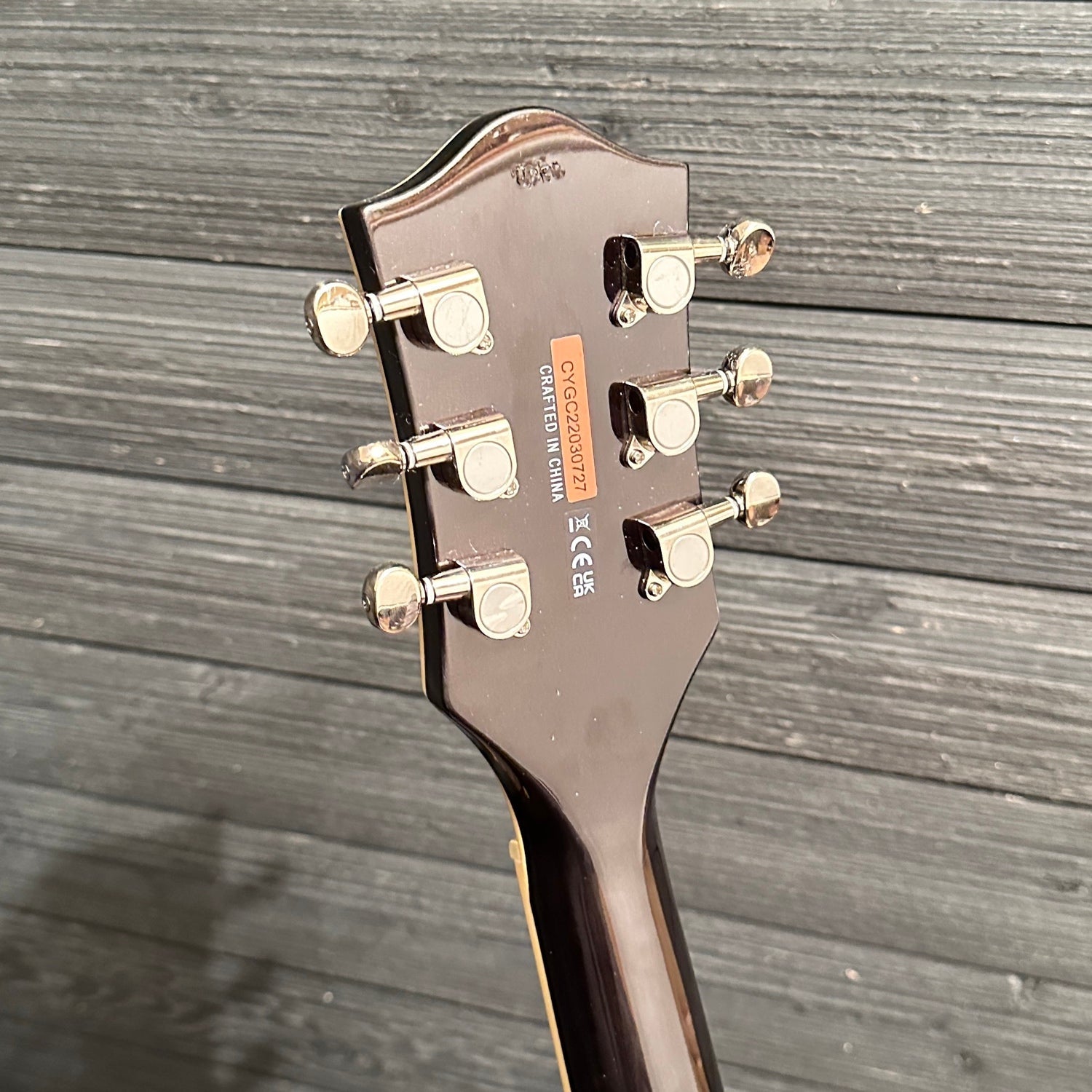 Painstakingly crafted with essential Gretsch sound, style and playability, the G5622 is offered in three stunning finishes: Aged Walnut, Black Gold or Bristol Fog with nickel hardware and aged white body binding with multi-ply purfling. The Aged Walnut and Black Gold finishes feature a gold pickguard, while Bristol Fog comes with a black pickguard.