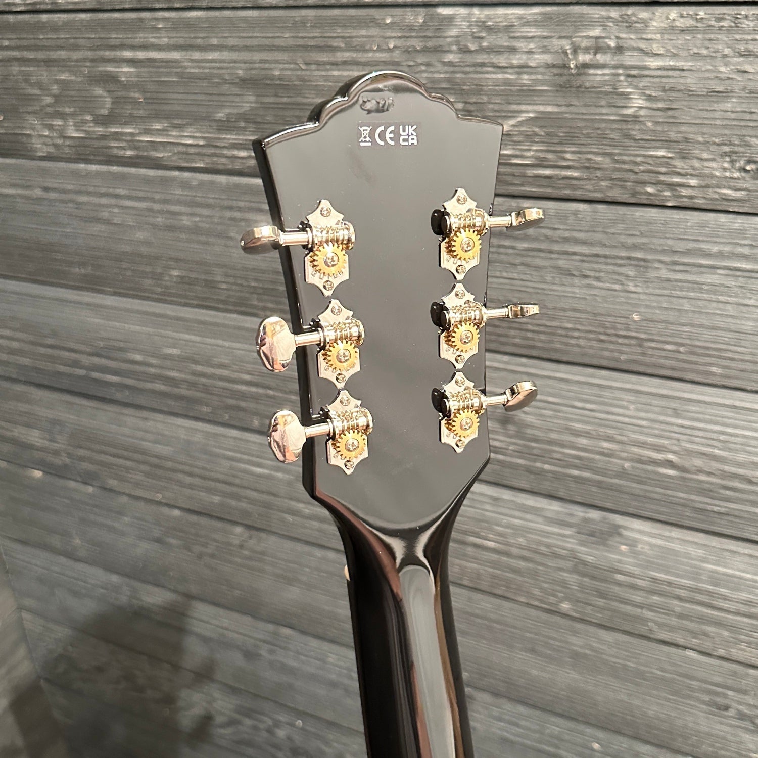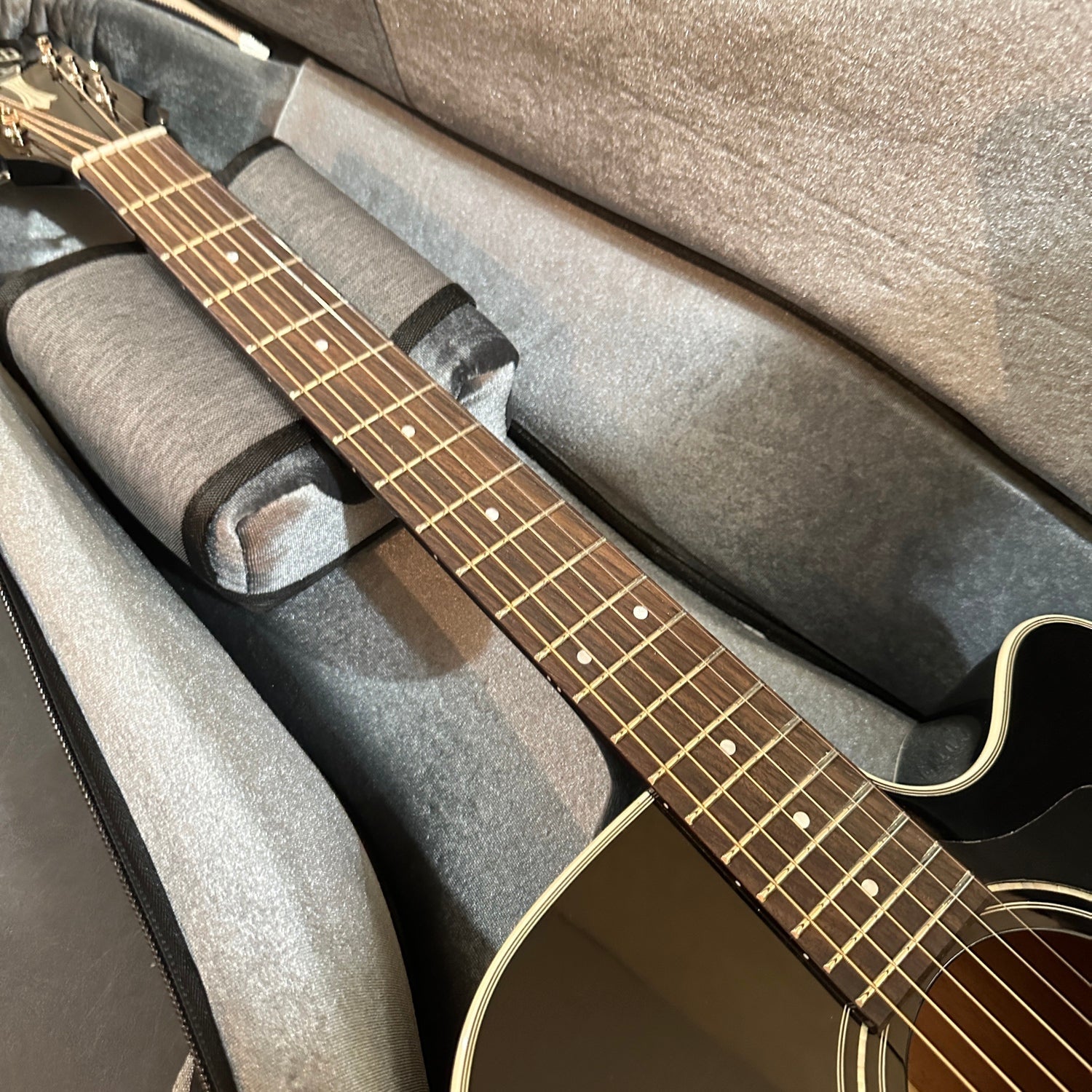 The D-140 models from Guild are performance-driven dreadnoughts with all the playability, tone, and vibe that have made Guild a go-to name for discerning players for over 70 years. The D-140CE Black adds a new color option to the ever-popular D-40 and D-140 lineup, pairing an eye catching black high gloss finish that contrasts beautifully with white binding and Mother-of-Pearl inlays in the rosette and headstock. Premium specs like all solid tonewoods, bone nut/saddle, a Fishman GT-1 pickup system, and Guild’s Premium quilted gig bag with microfleece interior make the D-140CE a professional level instrument packed with incredible value.