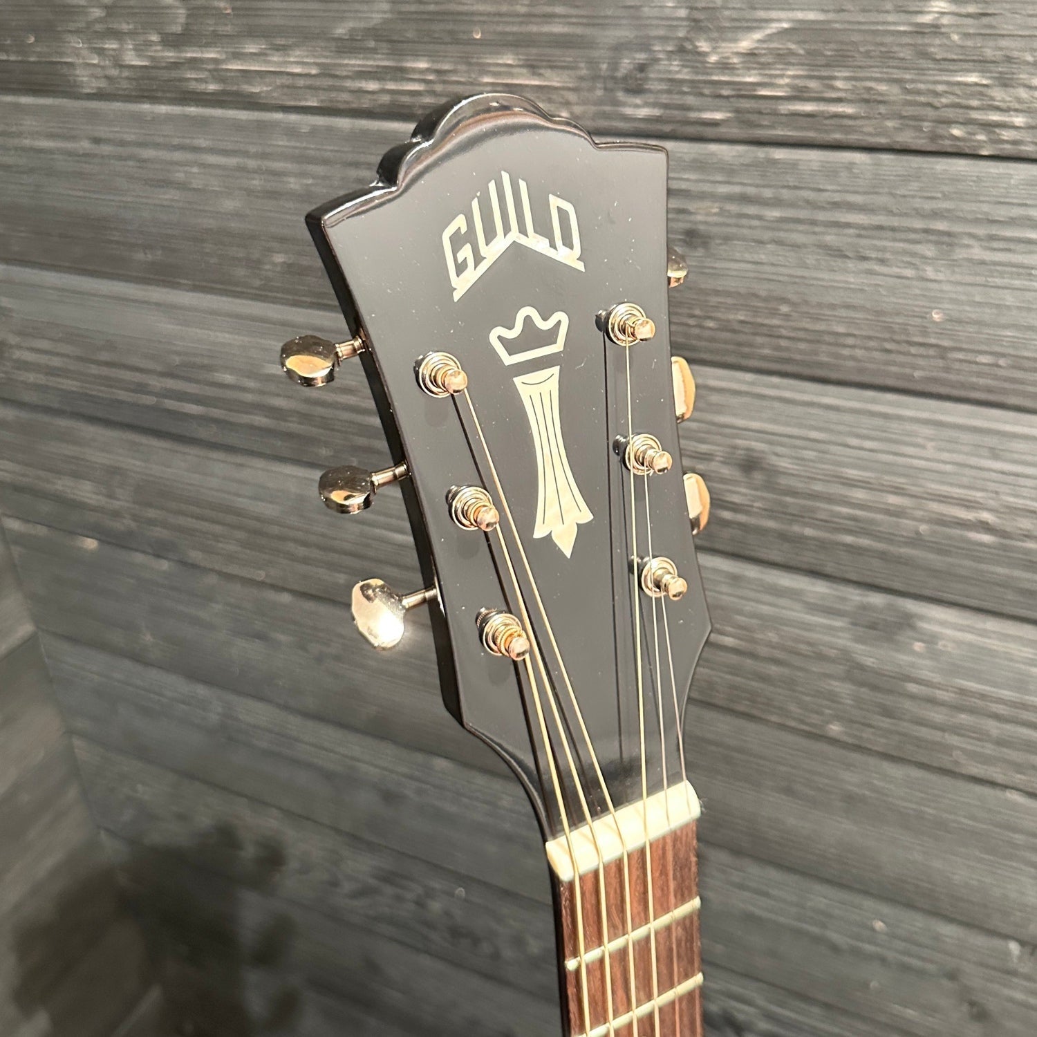 Additional premium features include Guild Vintage 18 open gear tuners with 18:1 gear ratio, Ivoroid binding, and a Fishman® GT-1 pickup with soundhole volume and tone control. A mother-of-pearl rosette and Guild’s iconic Chesterfield headstock emblem reminiscent of 1960s models complete the package. Ships with a Guild Premium Acoustic Gig Bag.