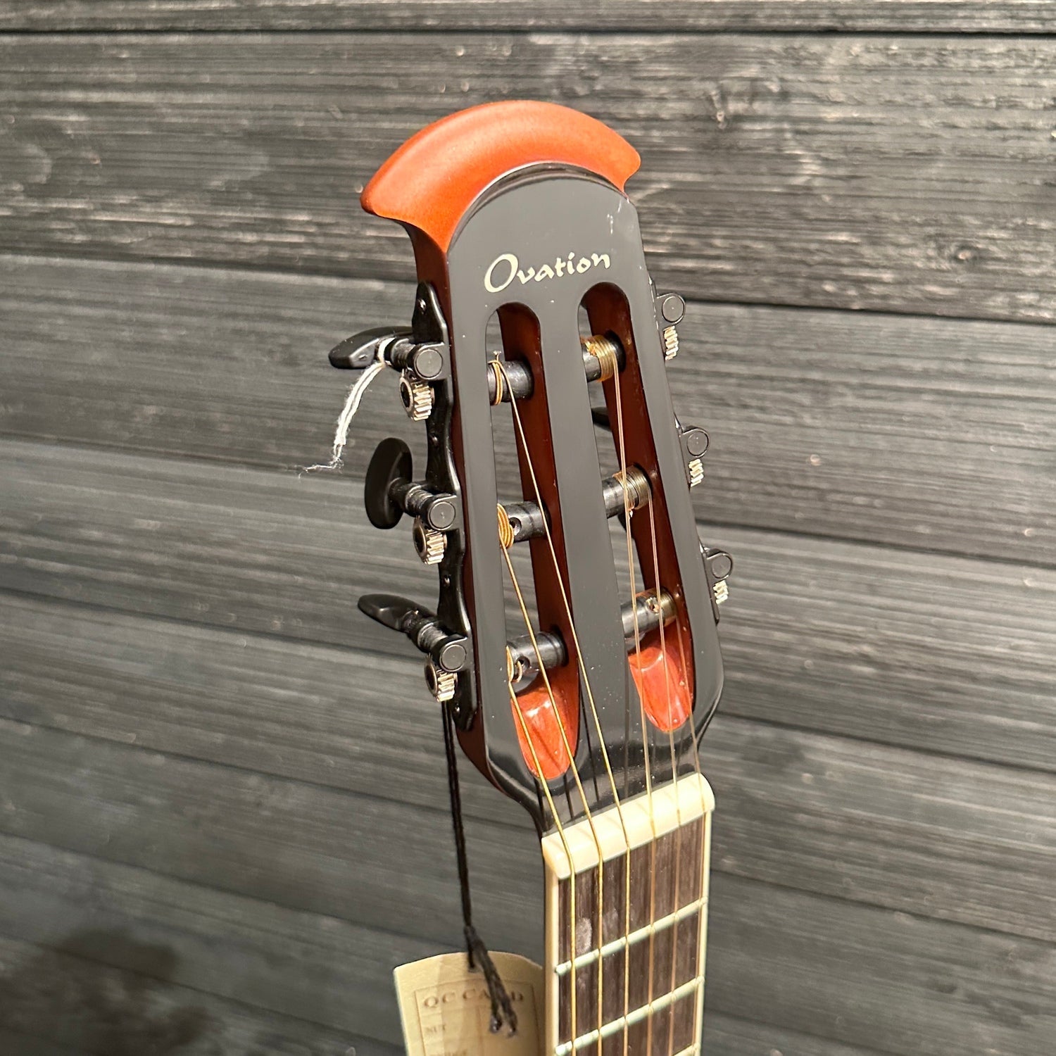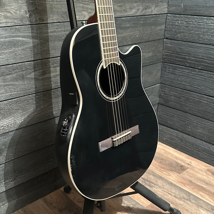 The Ovation Celebrity Standard Classical Mid-depth Acoustic-electric Guitar is loaded with Ovation's legendary amplified presentation and comfortable design. The Celebrity Standard features a mid-depth Lyrachord acoustic body with a solid cedar top. This tonewood delivers a warm sound, a heavy attack, and beautiful harmonics, along with phenomenal volume and projection. A CT600A pickup provides stellar amplified tone and a 3-band EQ with Volume/Gain control gives you many tone-shaping options. The mahogany neck with ovangkol fingerboard also provides wonderful feel and an intuitive response to both flatpicking and fingerpicking styles.