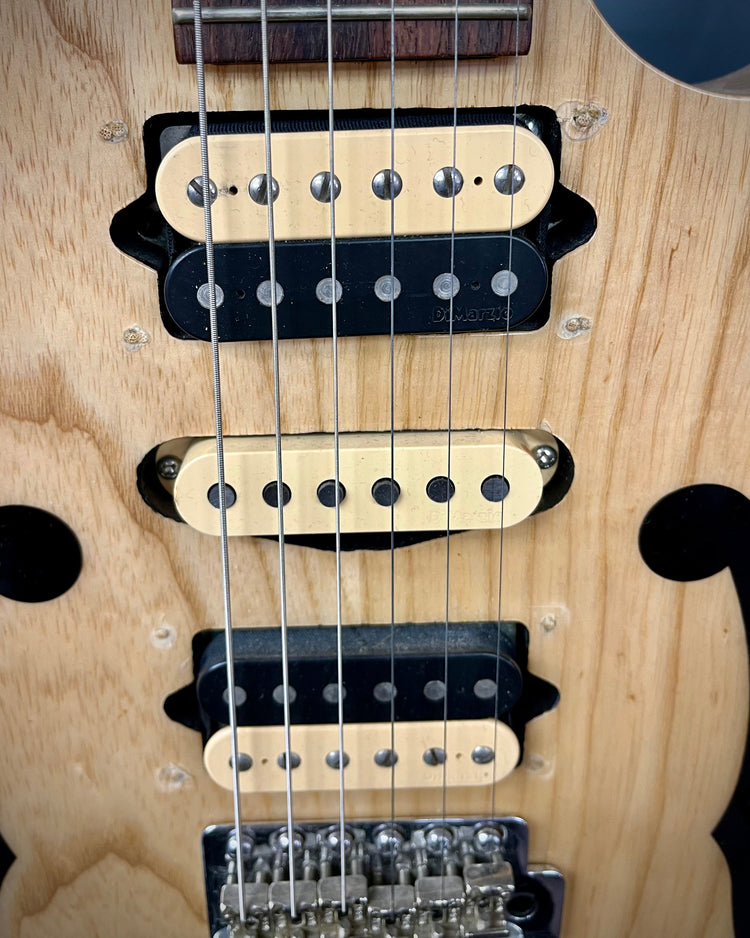 previous owner added pickup rings for aesthetics but the pickups are direct mount so these were removed, leaving two small holes around each pickup end. These have been filled but they are still noticeable, as a result we are not able to accept returns on this guitar if they relate to the holes being there.