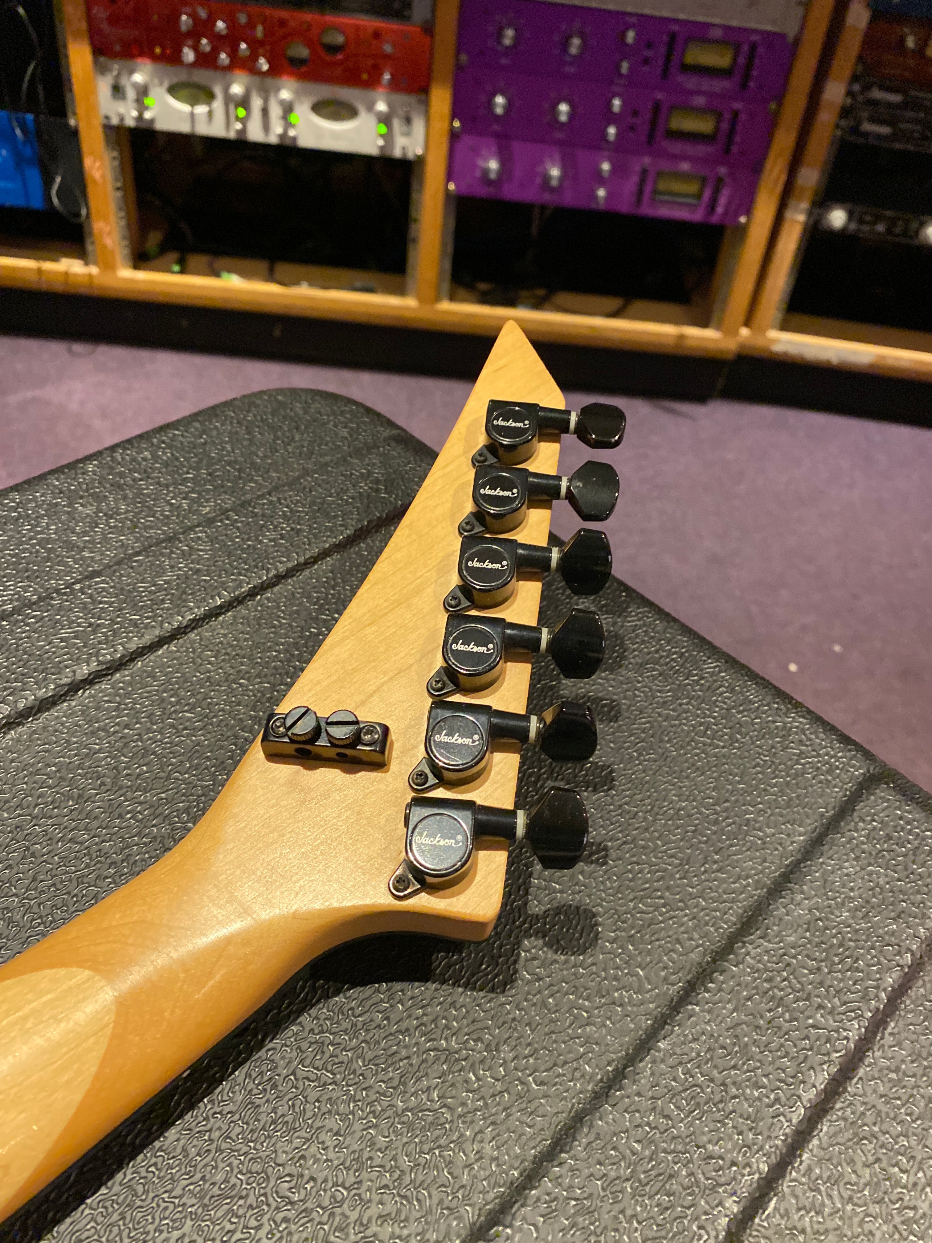 This awesome Jackson guitar is part of the world famous instrument collection at Essex Recording Studios! All pics, info and best prices are always on our official Essex Recording Studios site. Follow us on Facebook, Instagram, YouTube, TikTok, & Twitch @essexrecordingstudios