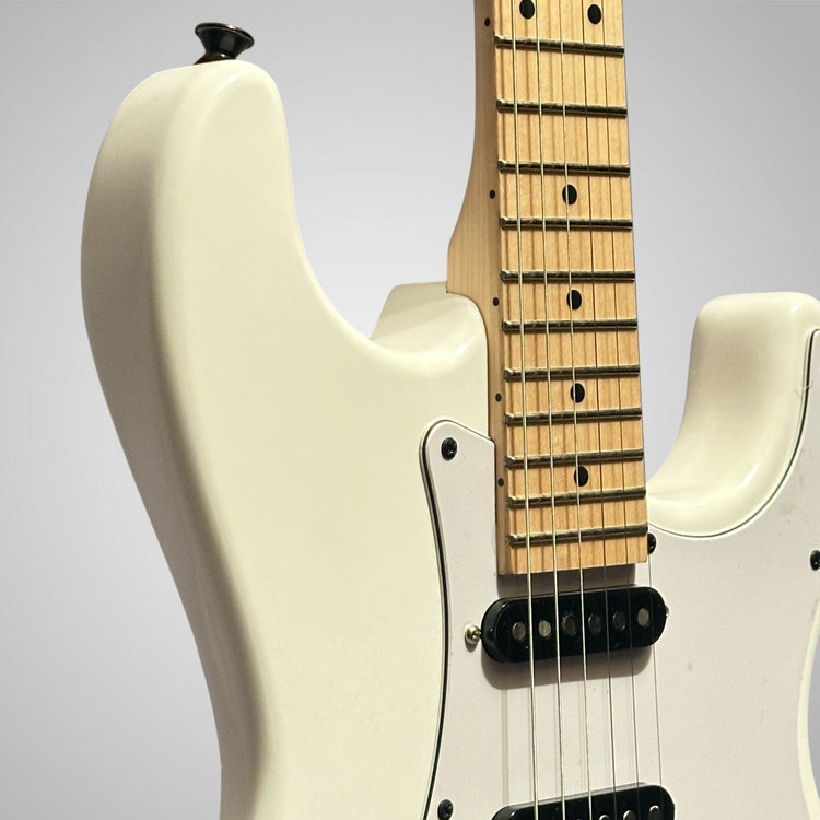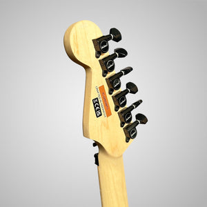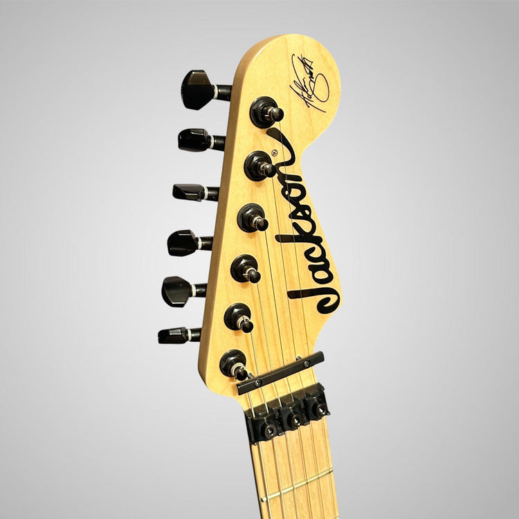 The affordable X Series Signature Adrian Smith SDX features a poplar body, bolt-on maple neck, compound-radius rosewood or maple fingerboard, HSS configuration (high-output Jackson bridge pickup, Jackson standard middle and neck single-coil pickups), white pickguard (laurel fingerboard model) or black pickguard (maple fingerboard model), five-way blade selector switch, Jackson tuners, Floyd Rose® Special tremolo system and black hardware.