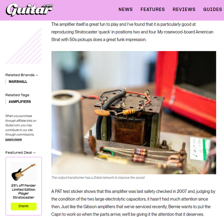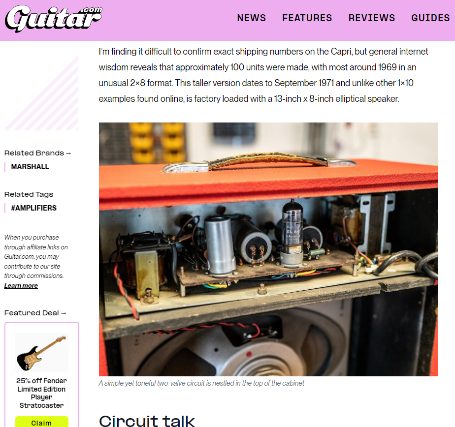 MARSHALL CAPRI Guitar Amplifier - Famous Vintage Amp ARTIST OWNED BY WHITESNAKE Bernie Marsden, Featured in Guitar.com