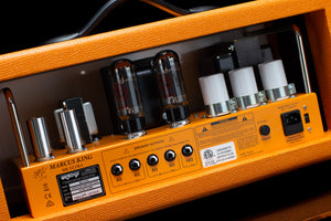 The MK Ultra features carefully tuned input circuitry that not only responds amazingly well to different volumes and tone settings on your guitar but also takes pedals extremely well and moulds them into the tone instead of sitting them on top. This is driven by a pair of 12AX7 preamp valves feeding into a power amp section consisting of two 6L6GC power valves that are cathode-biased. This choice of output valves is a first for Orange, bringing out all the harmonics and touch sensitivity that Marcus demands.