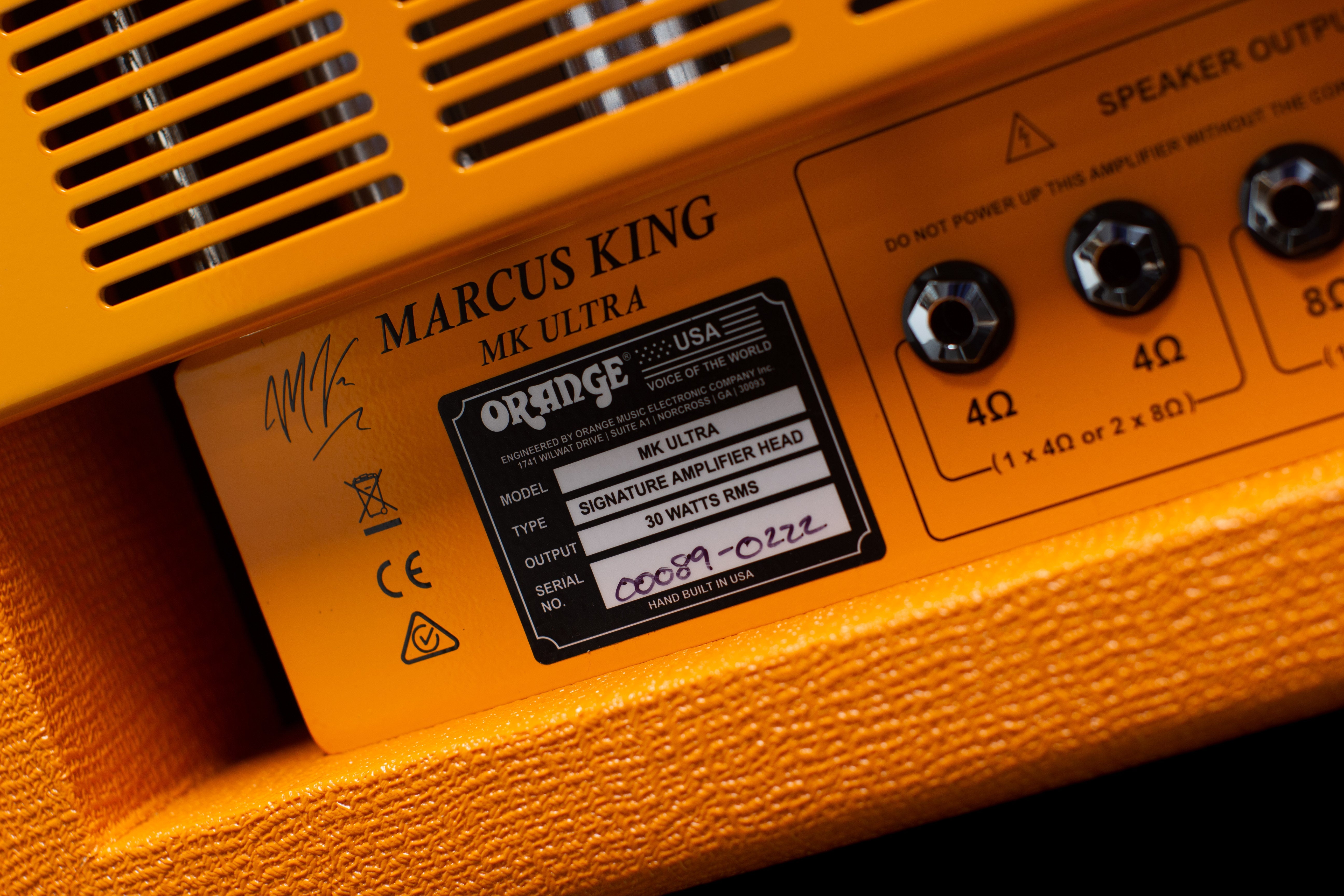 ‘Created in conjunction with guitar prodigy and Grammy Award-nominated singer–songwriter Marcus King, the MK Ultra is our first-ever amplifier designed with Orange USA and built in the USA. Using the highest-quality components available, including American-made custom Heyboer transformers, this hand-wired 30-watt all-valve guitar amplifier represents a marriage of classic American and British tonal sensibilities. Make no mistake though, this is not a copy of a previous design with slight modifications. This is a unique innovation that offers a new approach to the trademark Orange sound.