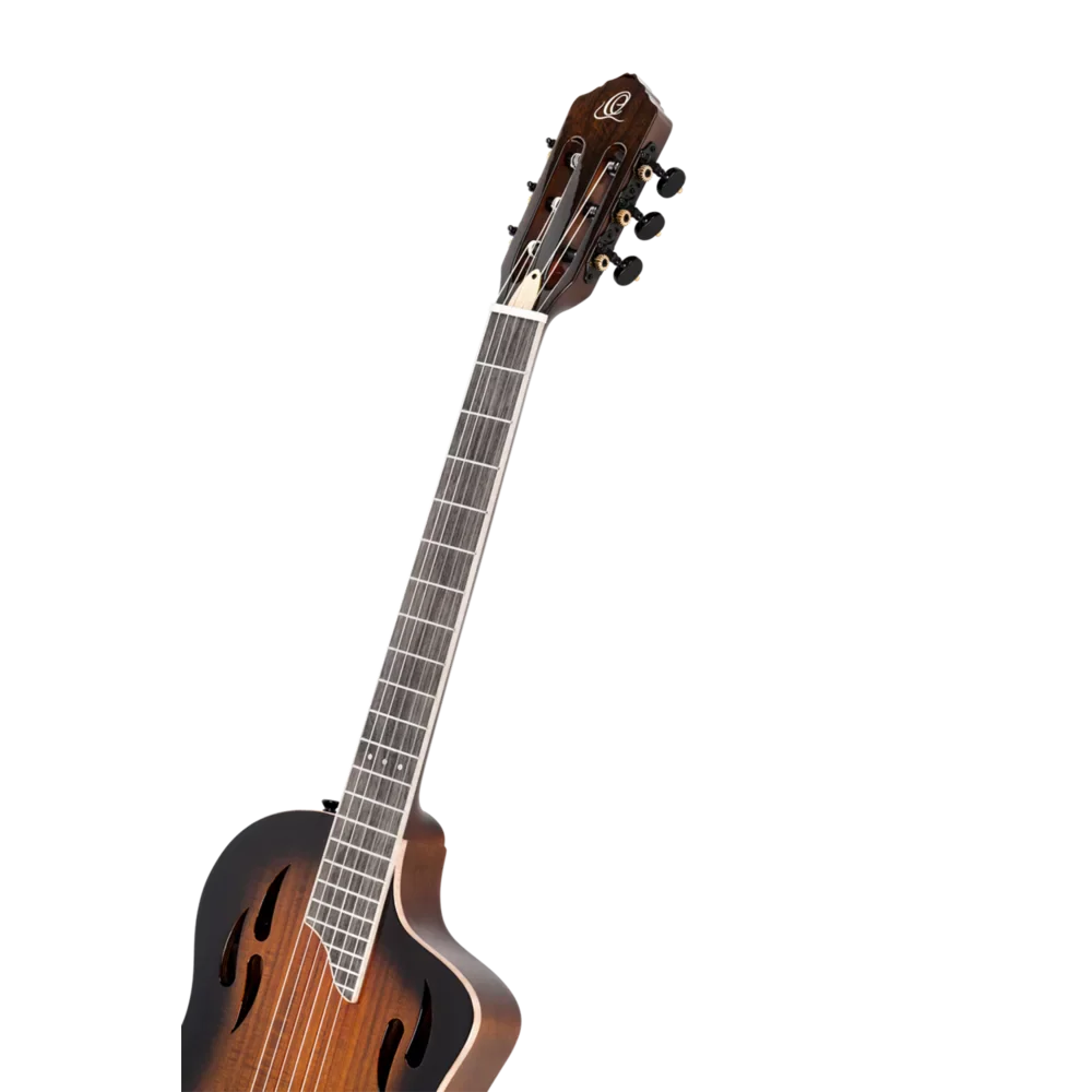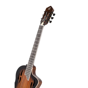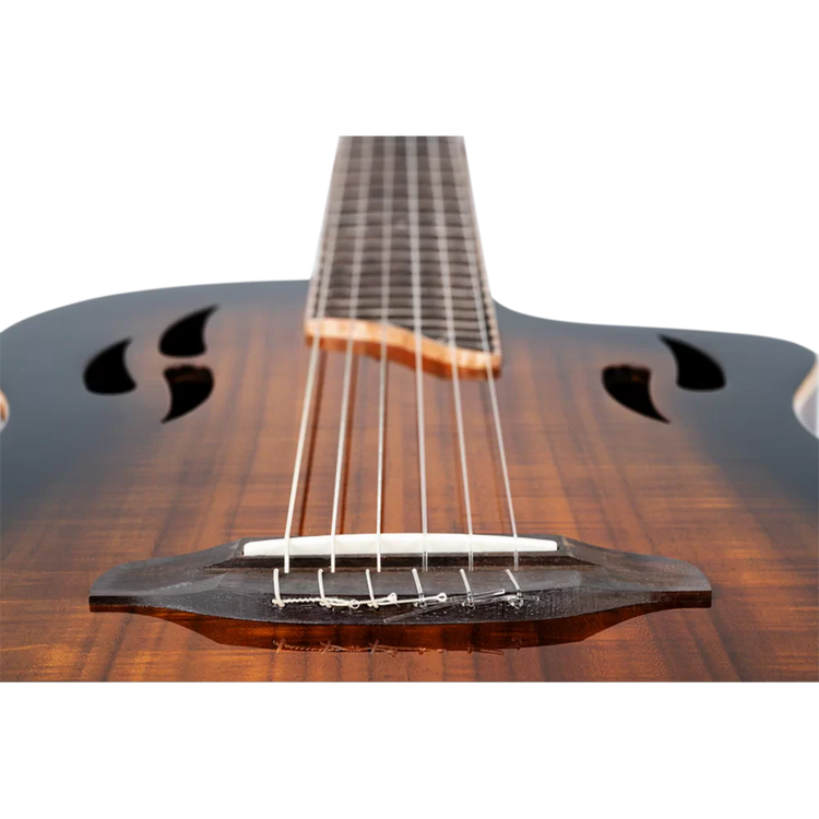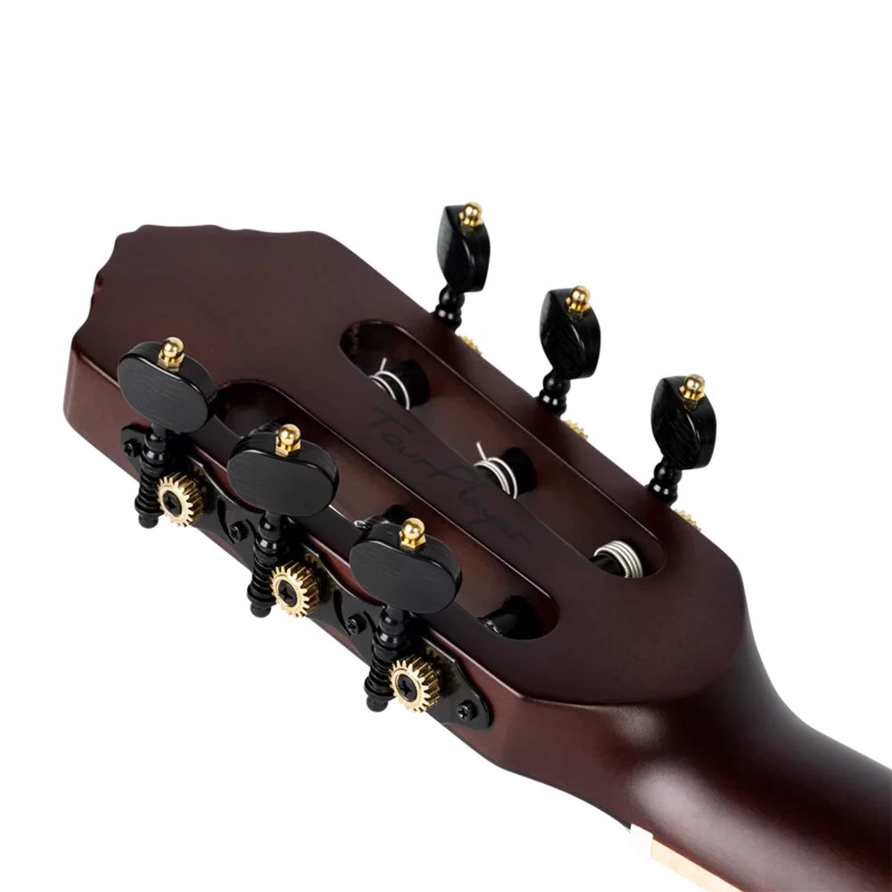 The revolutionary electric nylon string guitar TourPlayer is designed for live performances, delivering the authentic warmth and resonance of a nylon guitar while eliminating feedback issues. Explore a world of sound possibilities you never thought possible on a nylon guitar. The TourPlayer combines the beauty of nylon strings with the power and thrill of an electric guitar, offering innovation at its finest.