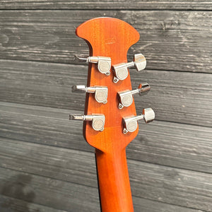 We are an authorized dealer for brand approved manufacturer refurbished guitars. These guitars are sent directly from the manufacturer to the authorized refurbishing center where they are fully inspected, set up and cleared by a certified technician. They are sent there for many reasons, including: returns, cosmetic flaws, minor repairs, surplus & discontinued or last years models. The guitars serial number may be partially altered and/or replaced and the back of the headstock is lightly stamped "used" by the authorized refurbishing center per manufacturer agreements.