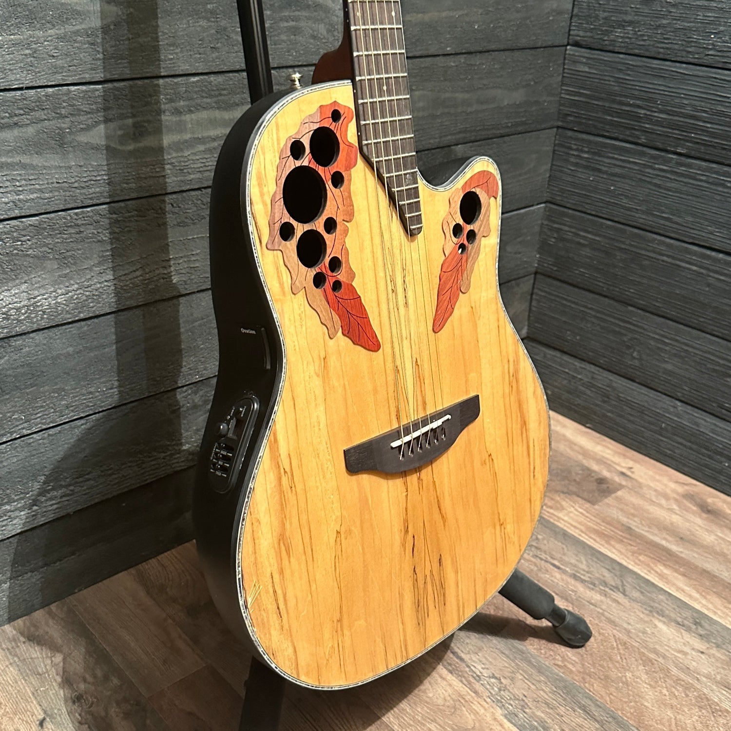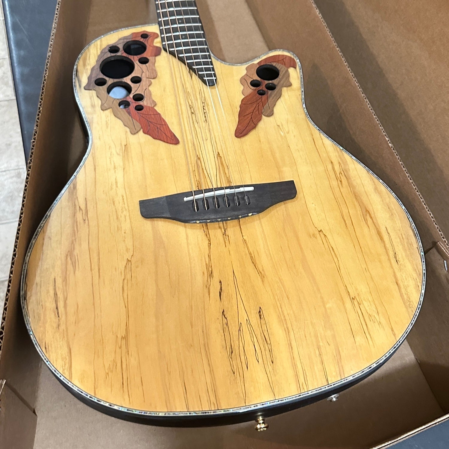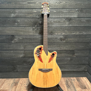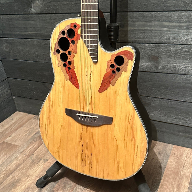 Ovation Celebrity Elite Plus models are special in every way. The literal plus is the tops, which are made of visually appealing woods such as spalted/flamed/quilted maple or koa.