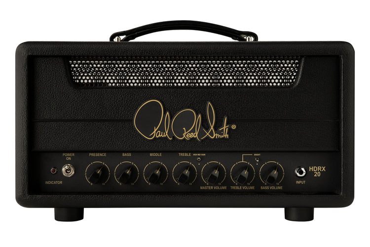 The PRS HDRX 20 features a 3-band TMB tone stack, 2-way bright switch, high-mid gain switch, and presence controls. These features mirror the historic amp and give players flexibility and increased control of their tone. The PRS HDRX 20 is also designed with internally bridged channels with individual treble and bass volume controls. This eliminates the need for a jumper cable (historically used on the outside of the amp) and allows players to dial in their distortion level and tone more easily by blending the lead and bass channels’ individual volume controls, bringing more modern convenience to the amp. The addition of a Master Volume control on the HDRX 20, a new feature for HDRX amps, is another modern convenience. Players can use the Master Volume to control the power amp section of the HDRX, making it more user friendly for players who do not want to add a volume attenuator to their setup.