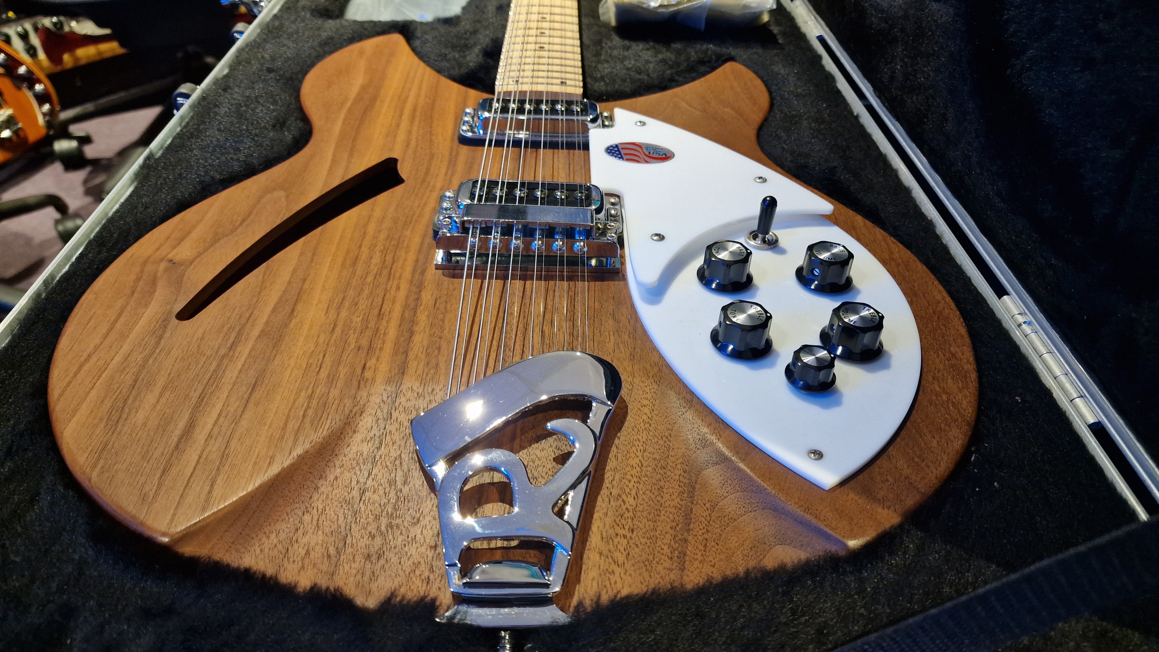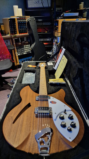 BRAND NEW 2014 Rickenbacker 330 12 String Walnut Electric Guitar with al documents and original hard case. This guitar was unsold by a UK dealer that went out of business, and so you have a rare opportunity to own a 9-year old time capsule that has a decade of time accrued towards its value as an eventual mint vintage collectors piece. You will be its first owner and player. The walnut body provides superior warmth, resonance and sustain over the maple models, which is why you have never seen a piano made of maple, but plenty made from walnut.