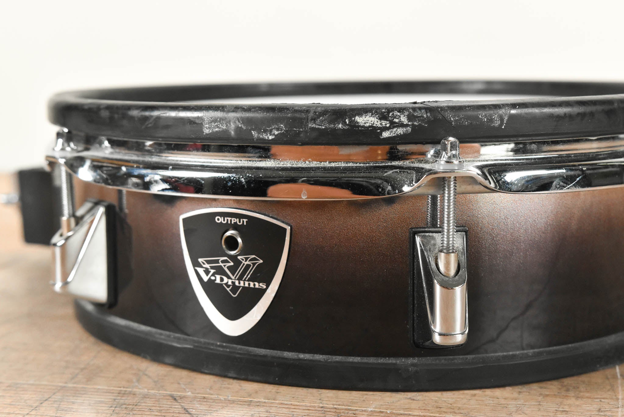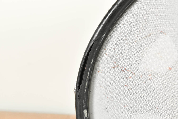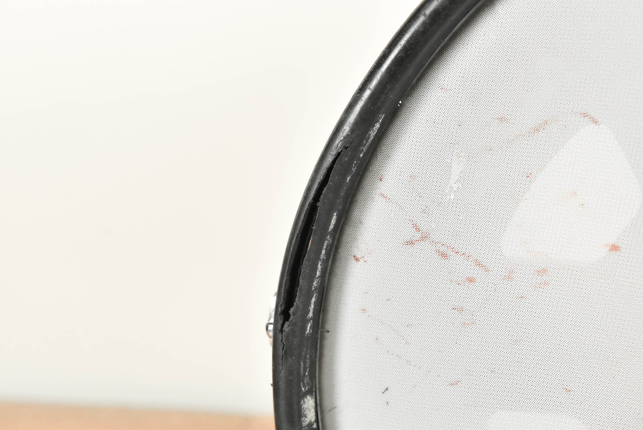 - The rim pad has rips in it and some tape reside on it, as pictured.