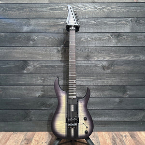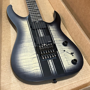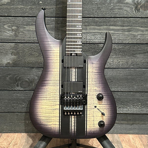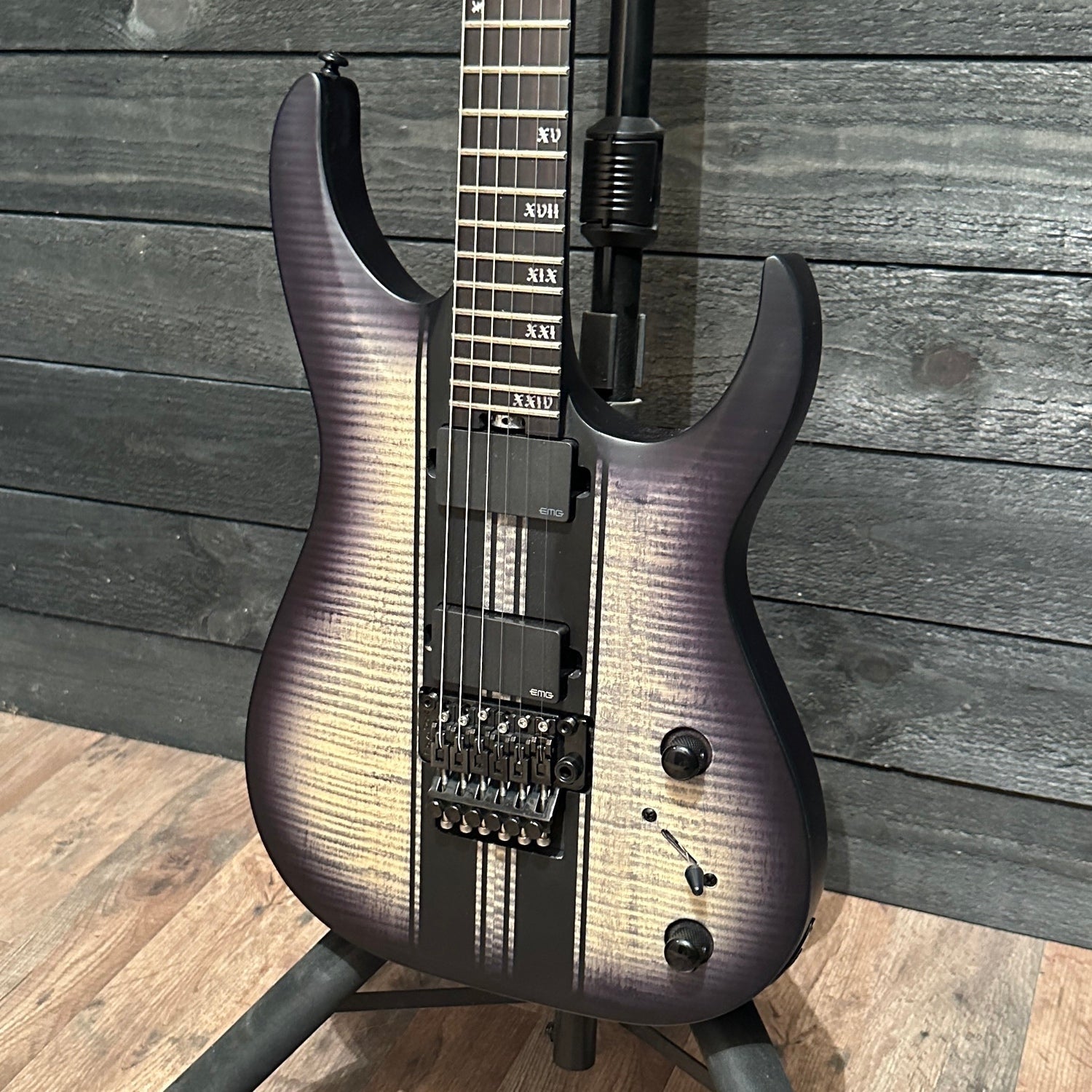 Barely street legal with the need for speed, the Banshee GT series will have you at full throttle and pushing the limits through blazing riffs. The reimagined Banshee shape features a mahogany body combined with a flamed maple full radius top and is decorated with a “GT” racing stripe that screams “Harder. Faster .Louder.” It’s hot-rodded with a set of EMG 81/60 active pickups, master volume, 3-way pickup lever, and master tone controls. The Banshee GT is armed with a Floyd Rose Special “Hot Rod” bridge that features stainless steel appointments, push-in tremolo arm, brass tremolo block, brass spring claw, and Floyd Rose noiseless springs. Featuring a 3 piece maple Ultra-Thin U set neck, carbon fiber reinforcement rods, 25.5” scale, 24 Extra Jumbo frets, and a 14” fretboard radius, the Banshee GT is the ultimate “born to perform” riffing machine.