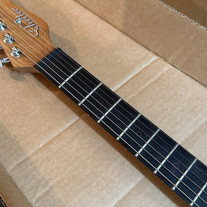We are an authorized dealer for brand approved manufacturer refurbished guitars. These guitars are sent directly from the manufacturer to the authorized refurbishing center where they are fully inspected and cleared by a certified technician. They are sent there for many reasons, including: returns, cosmetic flaws, minor repairs, returns, surplus & discontinued or last years models. Most of theses guitars are given a new serial number and the back of the headstock is lightly stamped "used" by the authorized refurbishing center.