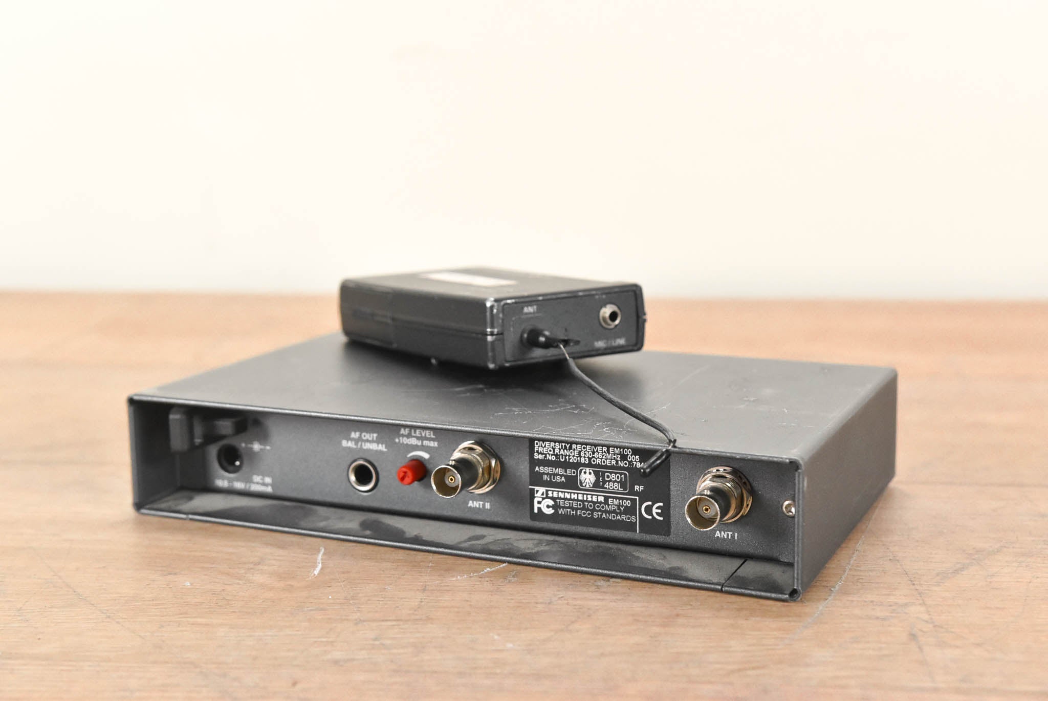 EM 100 Receiver w/ SK 100 Belt Pack. B Range - 630-662 MHz. Not for use in the U.S. Please check your country's wireless frequency laws and regulations before purchasing. Some frequency ranges are illegal to use depending upon the country. Batteries are not included.