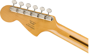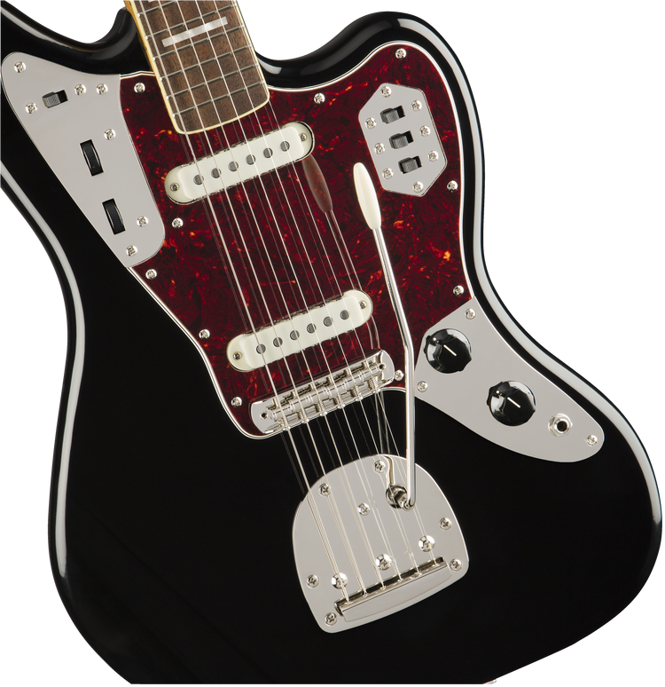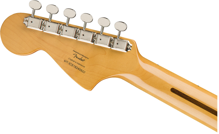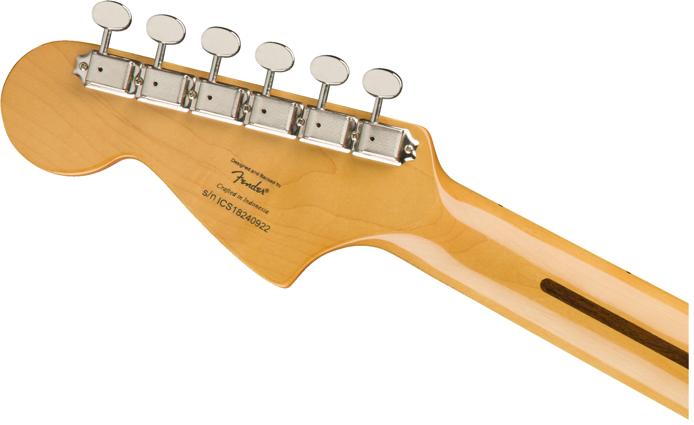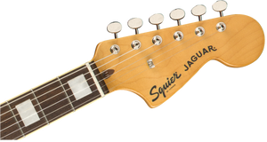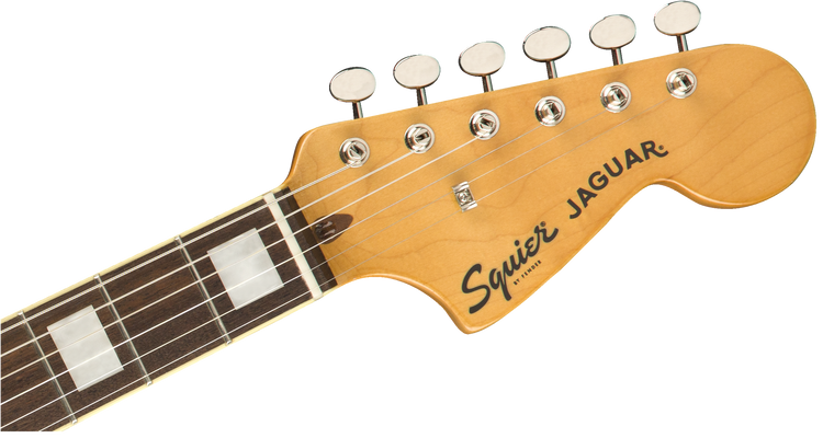 The Classic Vibe ‘70s Jaguar® turns up the volume on retro style and produces incredible tone courtesy of its dual Fender-Designed alnico single coil pickups. Small hands will appreciate the short 24” scale length and slim, comfortable “C”-shaped neck profile with an easy-playing 9.5”-radius fingerboard and narrow-tall frets. This Jaguar is faithful to the original with a vintage-style tremolo system for expressive string bending effects and floating bridge with barrel saddles for solid string stability. This throwback Squier model also features 1970s-inspired headstock markings, rich-looking nickel-plated hardware and a slick vintage-tint gloss neck finish for an old-school vibe.