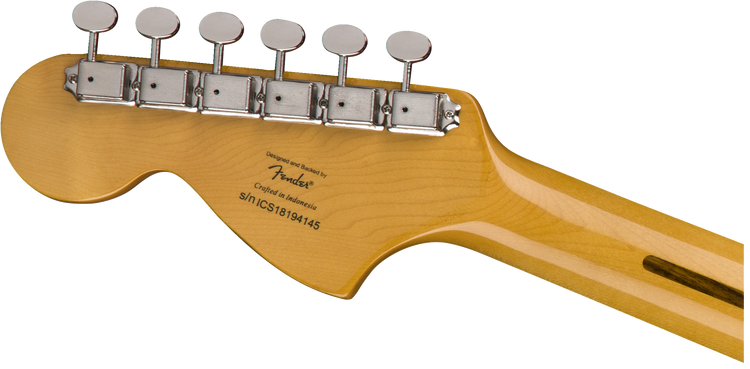A tip of the hat to the large-headstock Strat® models produced in the 1970s, the Classic Vibe '70s Stratocaster creates incredible tone courtesy of a trio of Fender-Designed alnico single-coil pickups. Player-friendly features include a slim, comfortable "C"-shaped neck profile with an easy-playing 9.5"-radius fingerboard and narrow-tall frets, as well as a vintage-style tremolo system for expressive string bending effects. This throwback Squier model also features 1970s-inspired headstock markings, rich-looking nickel-plated hardware and a slick vintage-tint gloss neck finish for an old-school vibe.