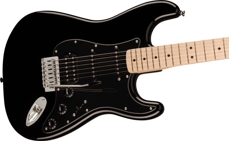 - Squier humbucking bridge pickup, single-coil neck and middle pickups (HSS)