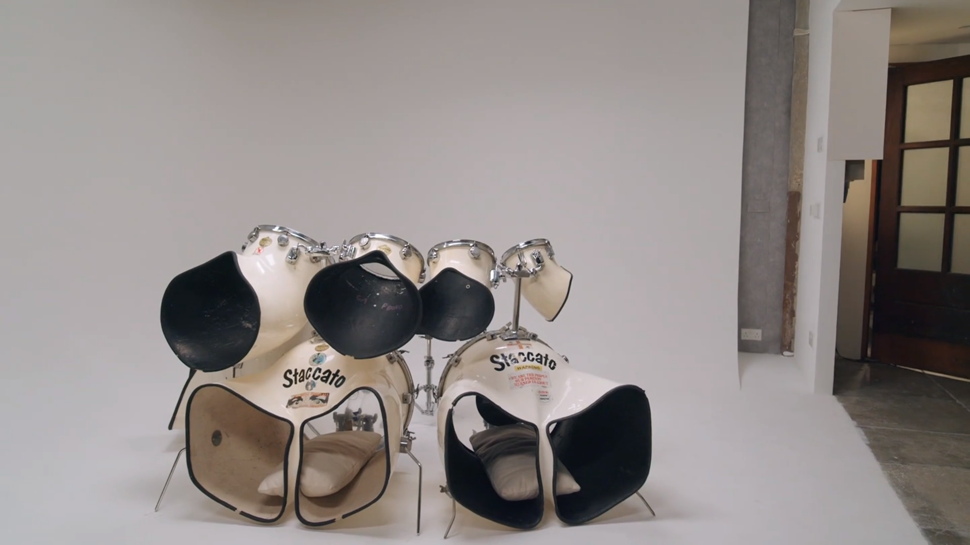 This is a drum kit that can make you stand out sonically and 1,000% make you stand out visually on stage. You can see Staccato drums in Rammstein's famous "Amerika" music video as well as Bow Wow Wow's hit song "I Want Candy." You have also seen these in the "Harry Potter and the Goblet of Fire" movie! Paint them, wrap them, airbrush the, graffiti the...there's so many options to make them stand out even more! The kick drums are designed to look like lower torso of a human with their legs out!