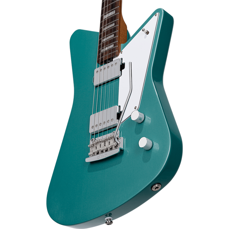 Designed in collaboration with Omar Rodriguez-Lopez, the Mariposa is a true stunner. On the surface, it's unique body shape and pickguard are eye catching, but it has a lot to offer under the hood, too. The Mariposa features a roasted neck, locking tuners, 3-way switching and two humbucking pickups controlled by separate volume knobs for endless tonal options.