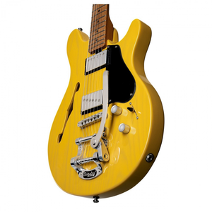 The Valentine Collection is known for effortlessly combining the best of iconic guitar features into the perfect package, and the newest installation in the legacy is no different. The 2023 Valentine stays true to the original specs that made it stand out - White Ash slab body, 12dB push-push boost, roasted maple neck, and locking tuners - while elevating and innovating. This addition to the line delivers with its all new chambered body and Tune-o-matic bridge with a Bigsby B50 to explore experimental sounds.