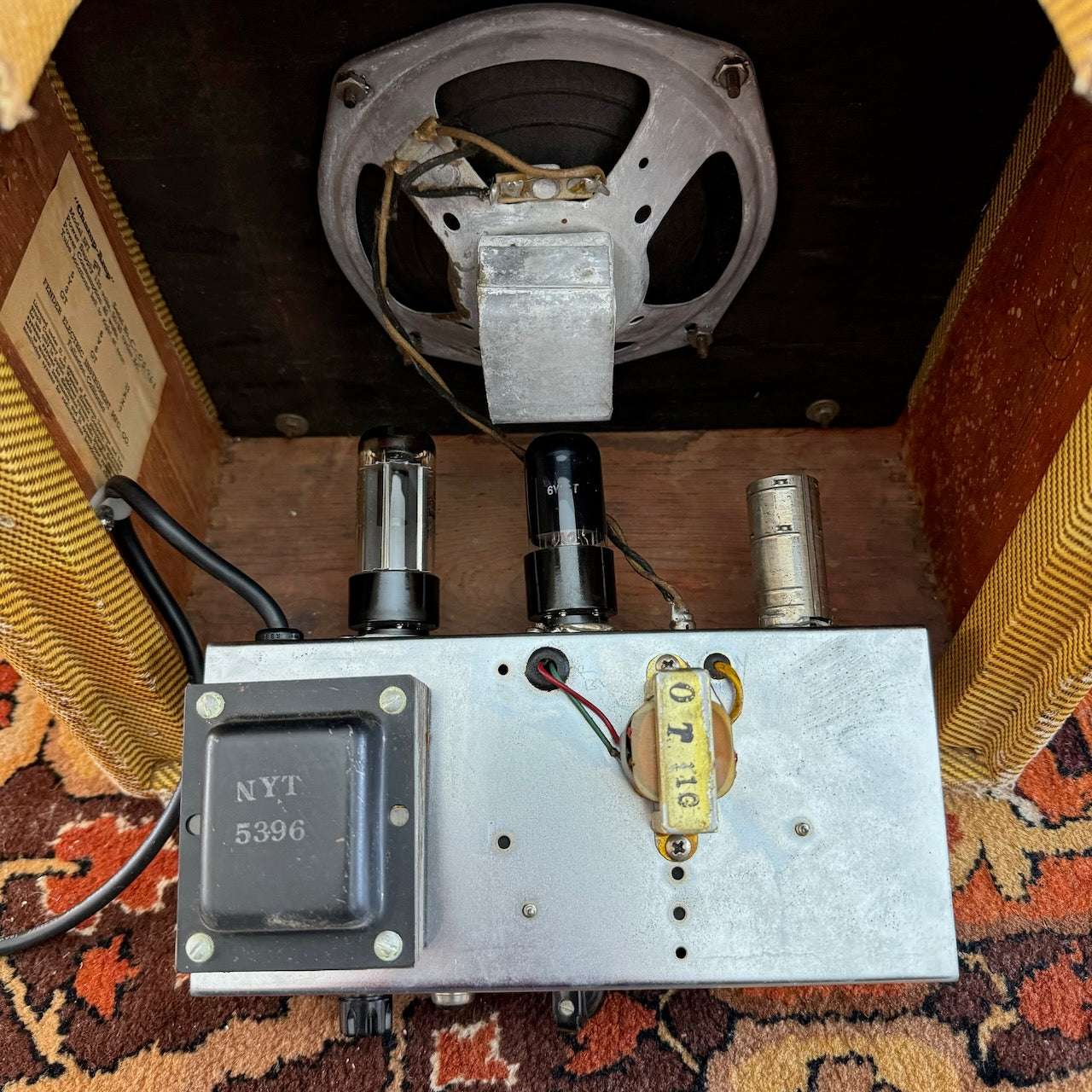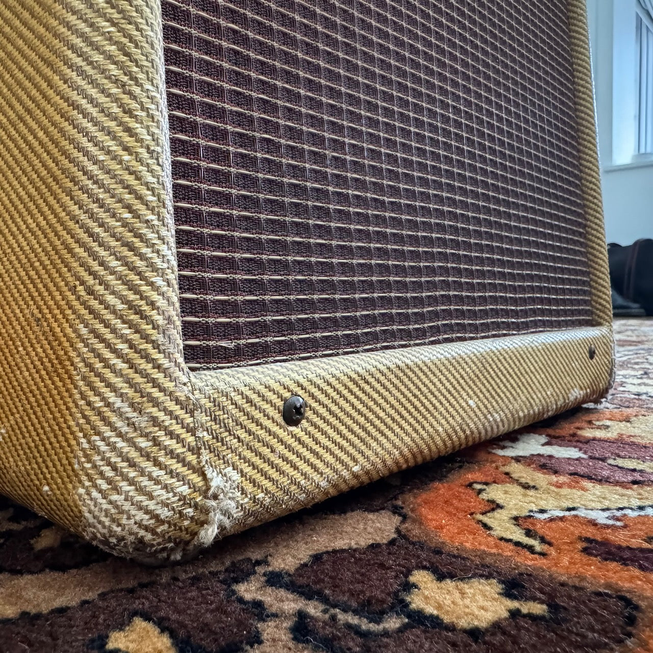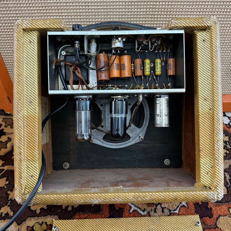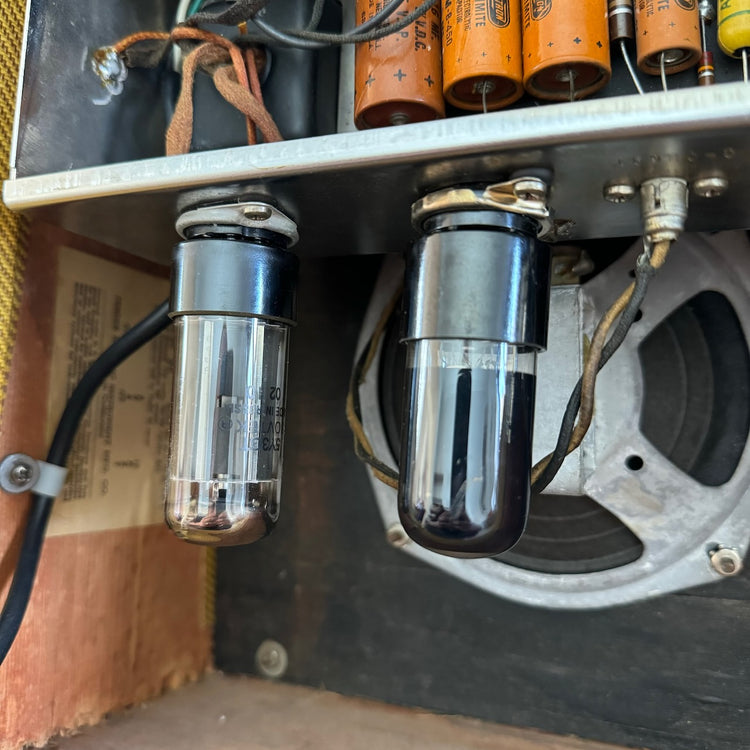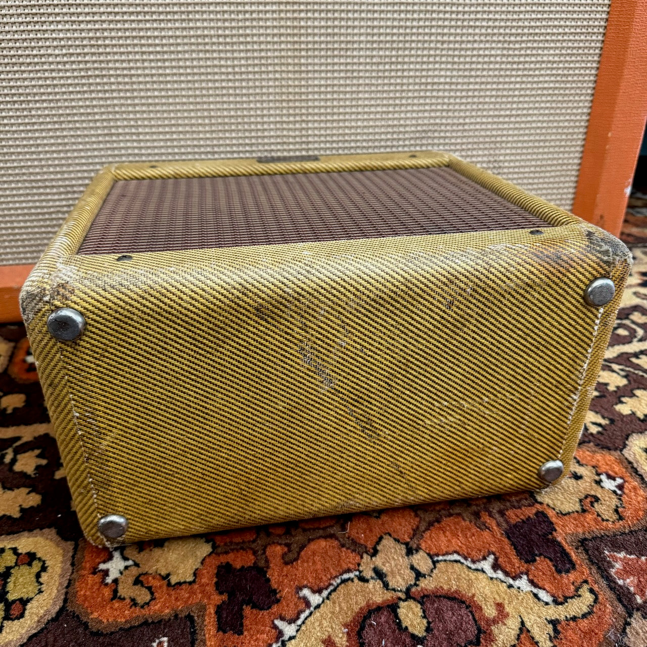 Here’s something you don’t see often at all - an original Tweed 1956 Fender Champ Amp, complete with the original Victoria Luggage cover - it is a real stunner. I bought this off of the long term collector, who had looked after this incredibly well as you can see. Internally original, including the speaker and the transformers. Two of the original valves have been replaced for the correct replacement, but one original remains. It's one of the nicest I've seen for sale, and is (in my opinion) a special year of Fender! Please see the pictures below as these form part of my description.