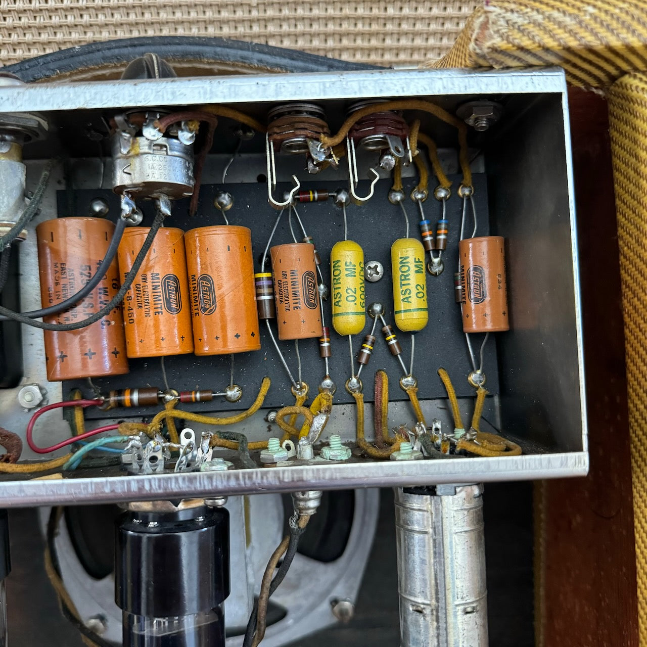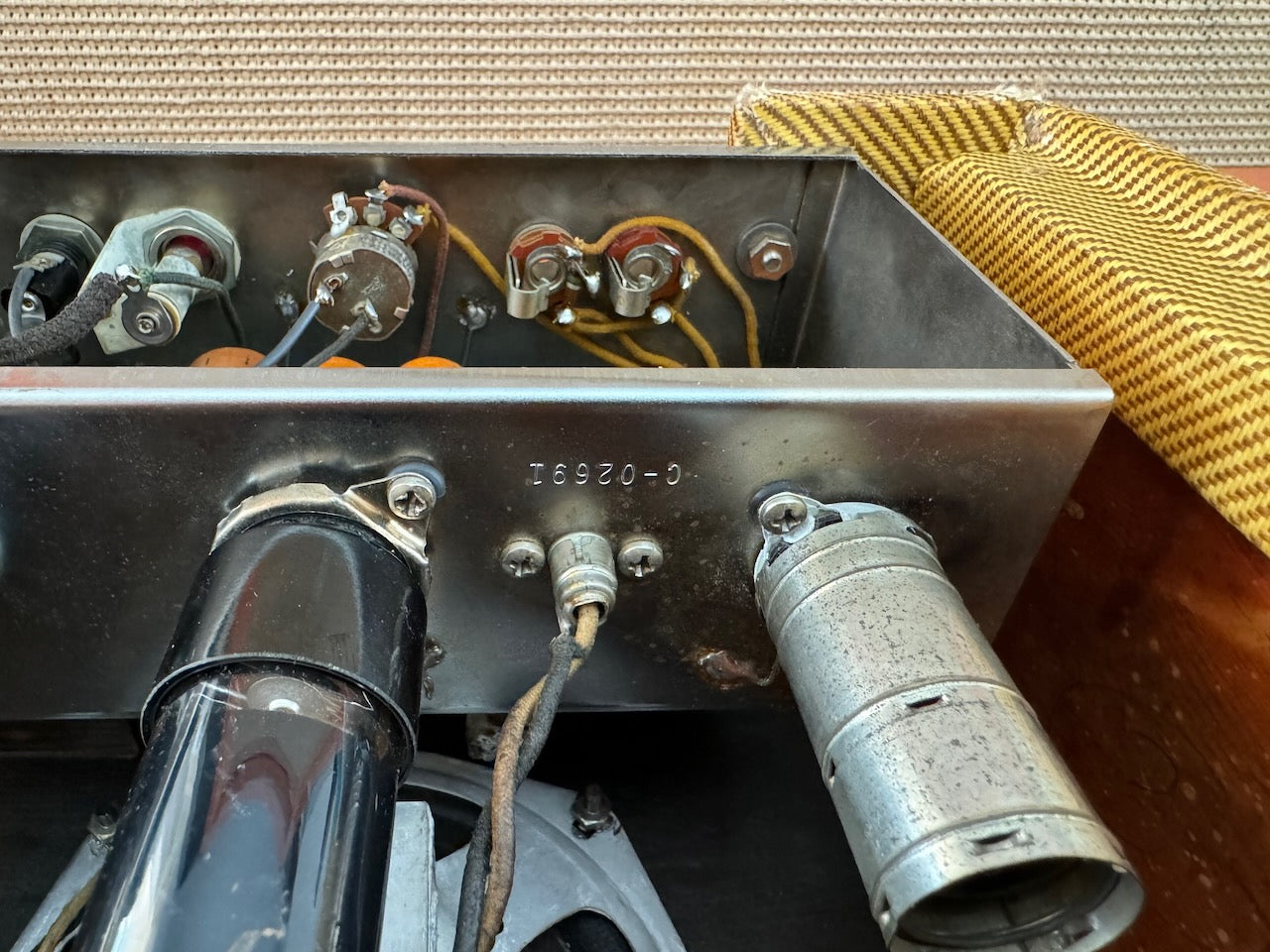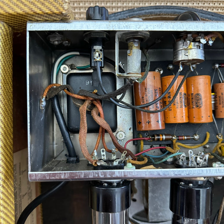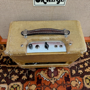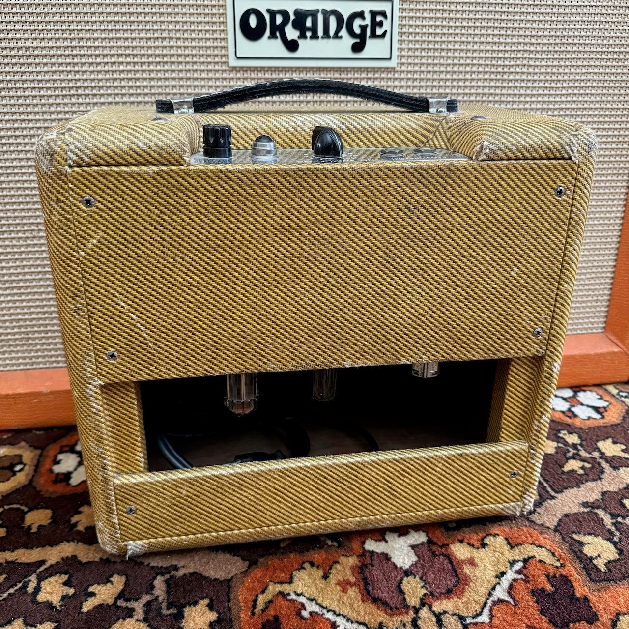 Here’s something you don’t see often at all - an original Tweed 1956 Fender Champ Amp, complete with the original Victoria Luggage cover - it is a real stunner. I bought this off of the long term collector, who had looked after this incredibly well as you can see. Internally original, including the speaker and the transformers. Two of the original valves have been replaced for the correct replacement, but one original remains. It's one of the nicest I've seen for sale, and is (in my opinion) a special year of Fender! Please see the pictures below as these form part of my description.