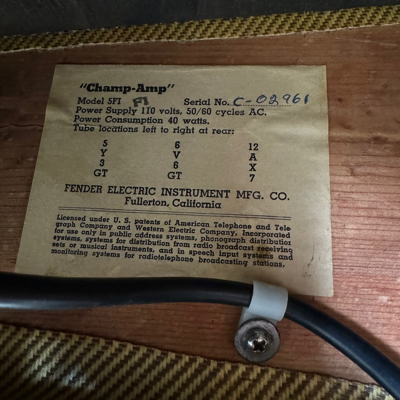 Vintage 1956 Fender Champ Amp 5F1 Tweed USA with Cover