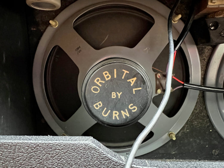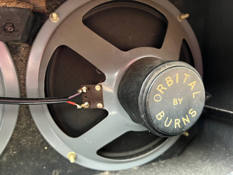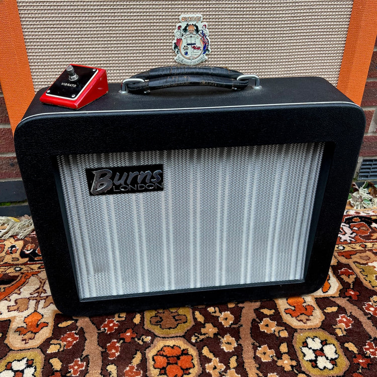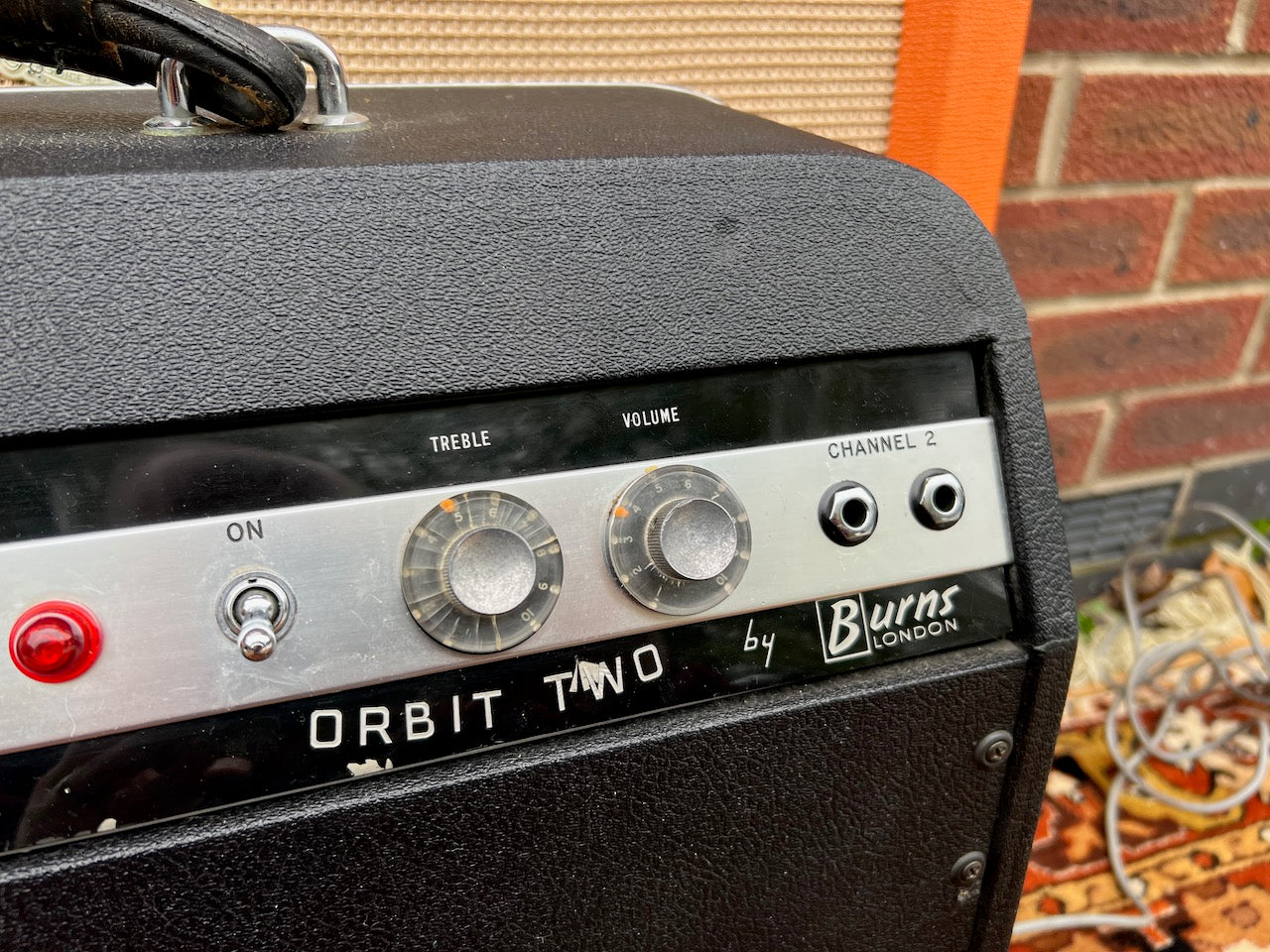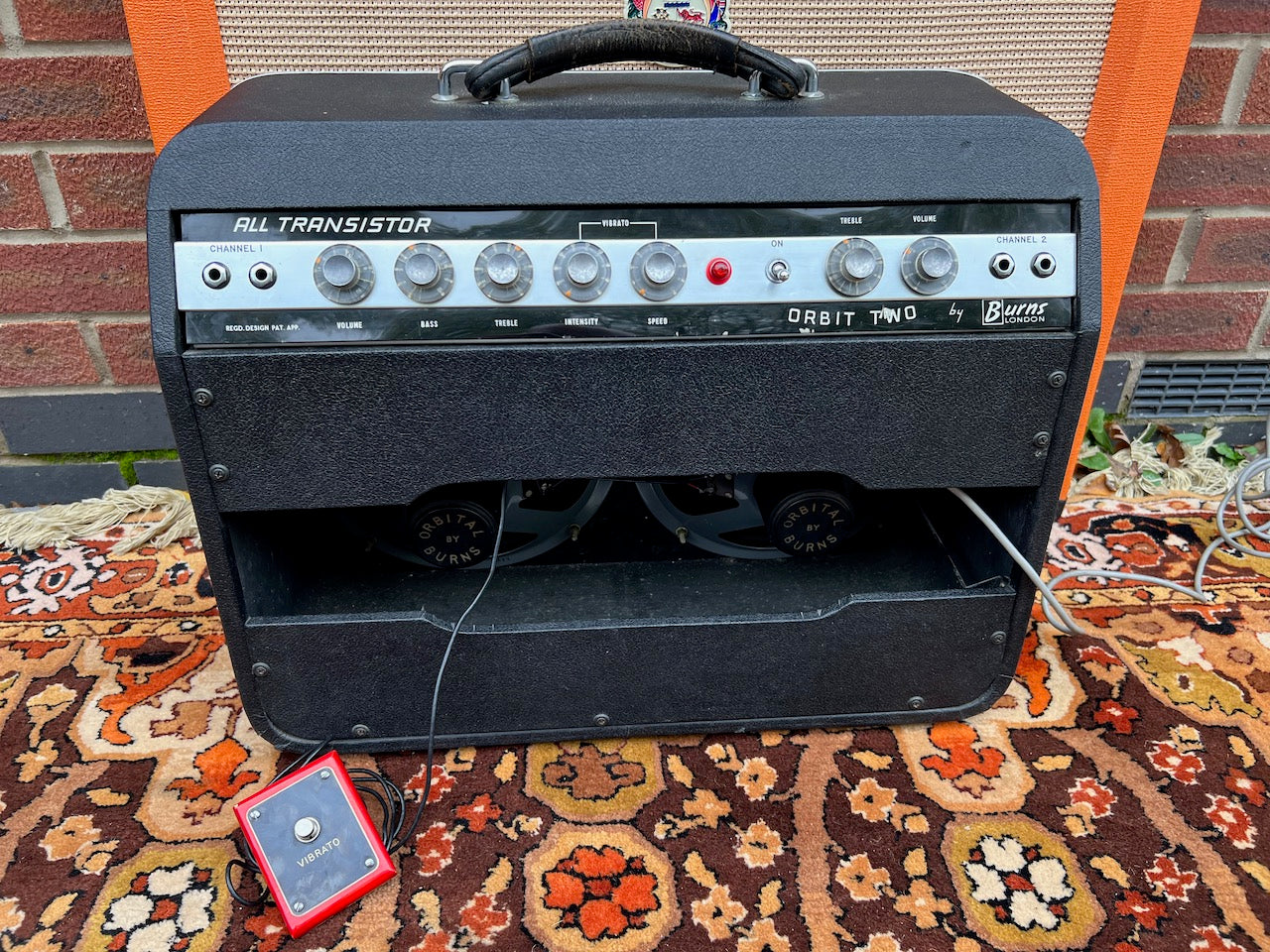 Here’s something you don’t see often at all. This 1960s Burns Orbit 2 amplifier is something I recently purchased off of the family of the original owner. It is in truly stunning condition throughout, even complete with the original cover and pedal. It's a wonderful little amplifier, strangely lightweight, and a pretty cool look about it too. They're hard to find in this sort of condition - rumour has it Hendrix kicked one of these downstairs once. Please see the pictures below as these form part of my description. And, as always, get in touch with me at The Music Locker to discuss a deal!