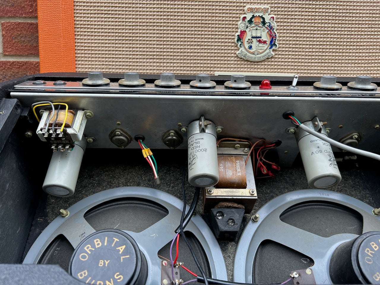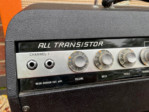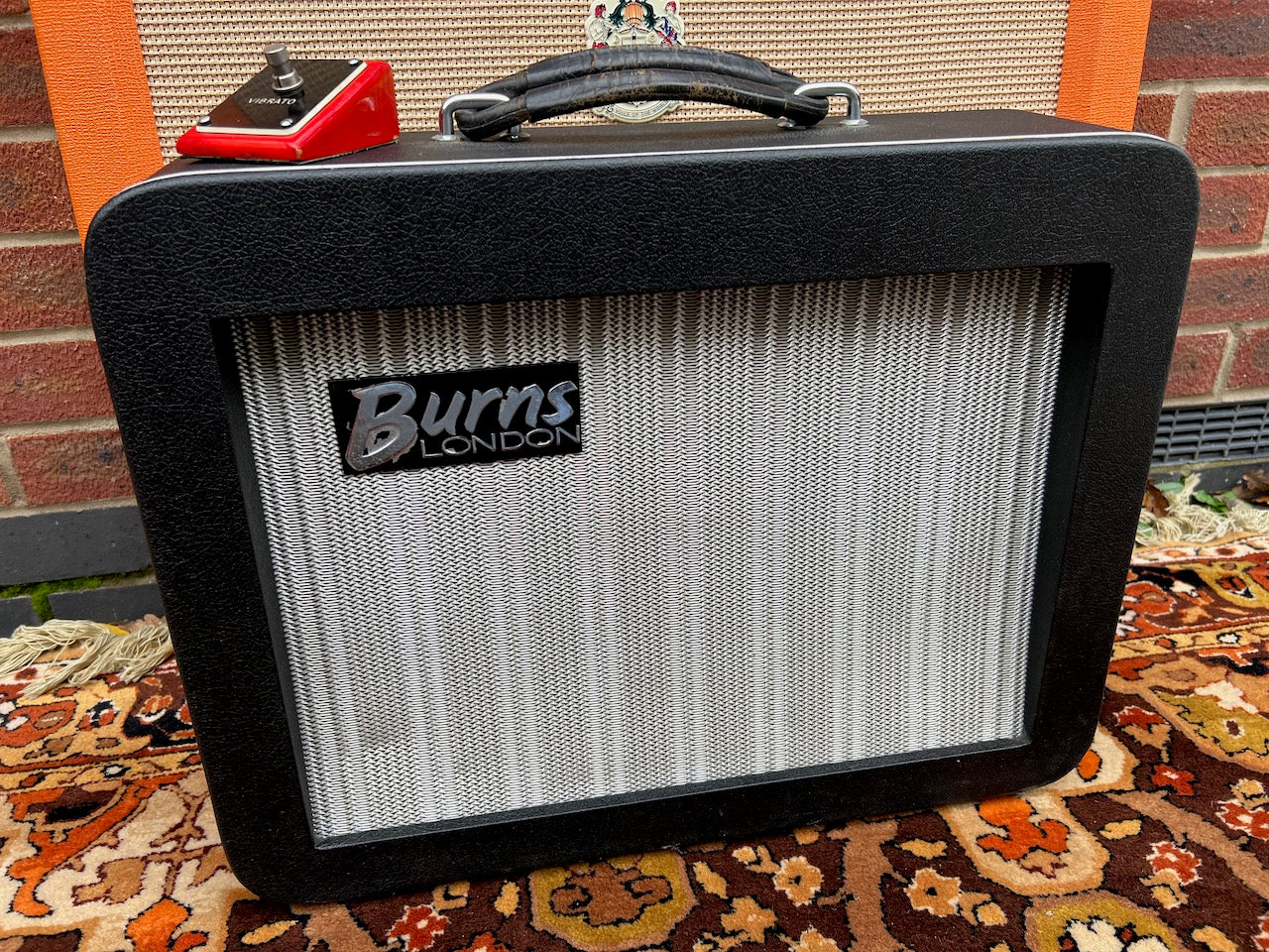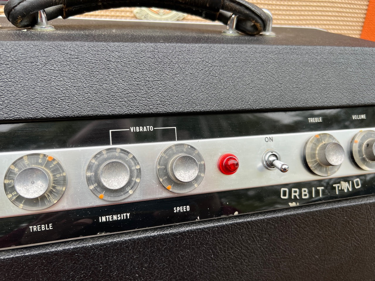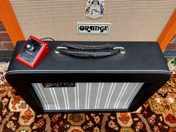 Here’s something you don’t see often at all. This 1960s Burns Orbit 2 amplifier is something I recently purchased off of the family of the original owner. It is in truly stunning condition throughout, even complete with the original cover and pedal. It's a wonderful little amplifier, strangely lightweight, and a pretty cool look about it too. They're hard to find in this sort of condition - rumour has it Hendrix kicked one of these downstairs once. Please see the pictures below as these form part of my description. And, as always, get in touch with me at The Music Locker to discuss a deal!