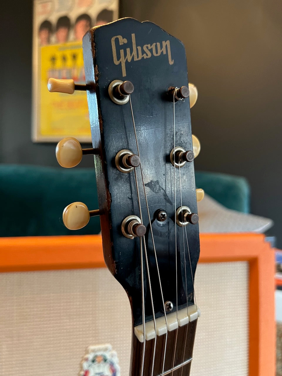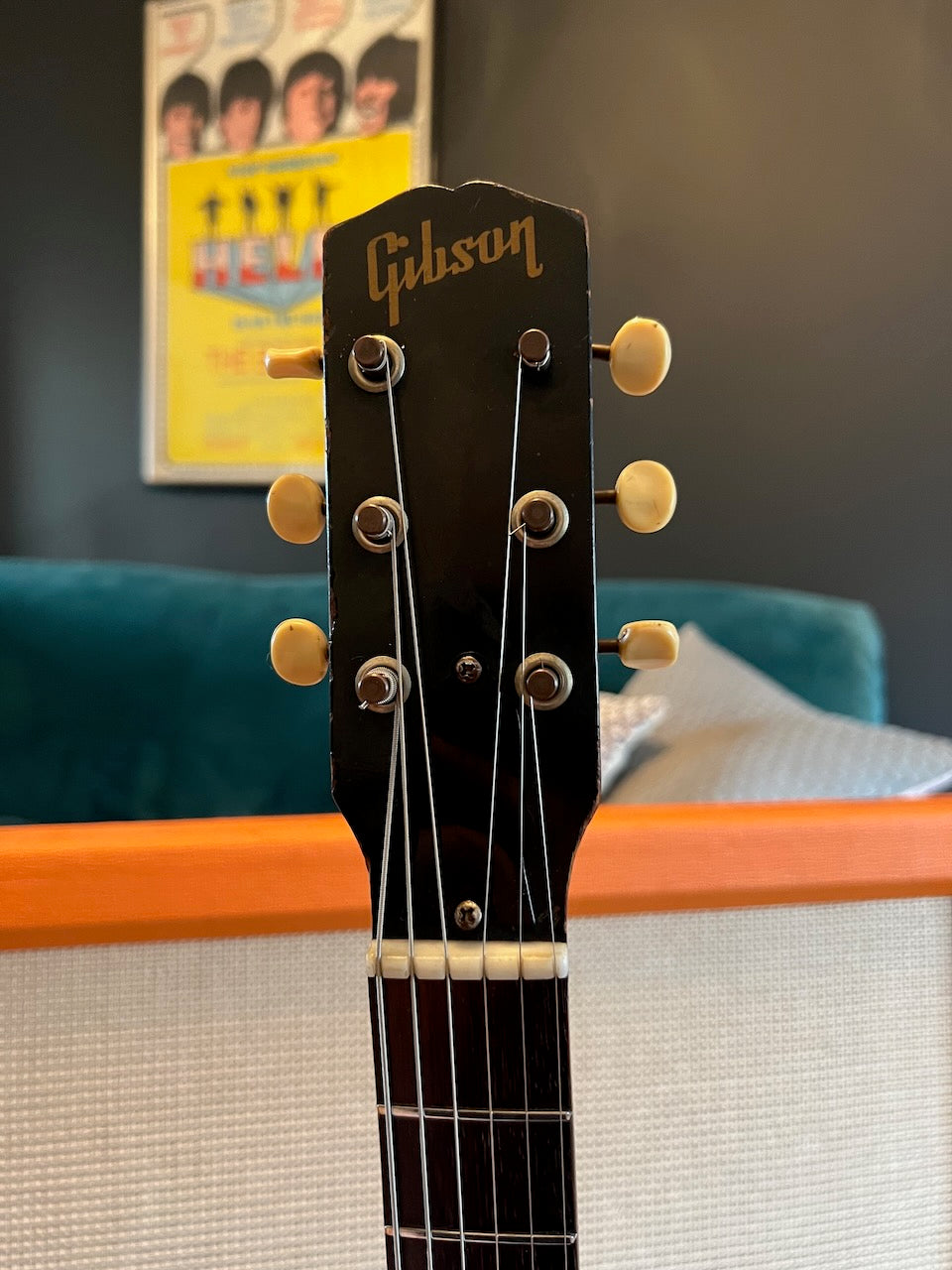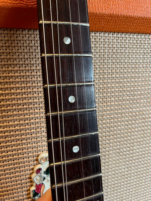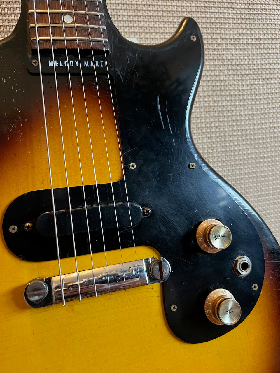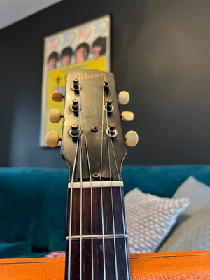 When I saw this in a guitar store in Nashville, I couldn't resist bringing it home. The natural checking on this one is absolutely stunning. This was walked into the store from the long term owner. It is in stunning original condition. It's a 1964 double-cut version of the Melody Maker line, in wonderful original condition as you can see. I believe the shop had it re-fretted when it came in, but this was the first work it had done on it. It's incredibly clean and plays like a dream! The guitar had lost its original case over the many years but it comes with a nice Gibson hard case that fits the bill. You'll not be disappointed with this one! Please see the pictures below as they form part of my description.