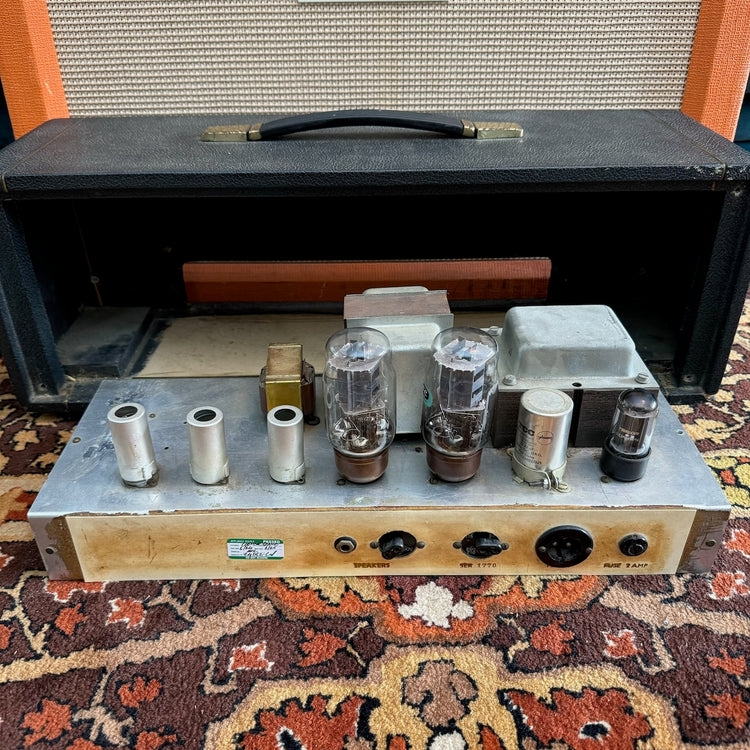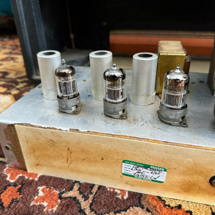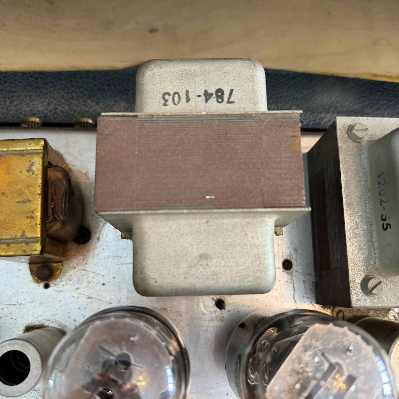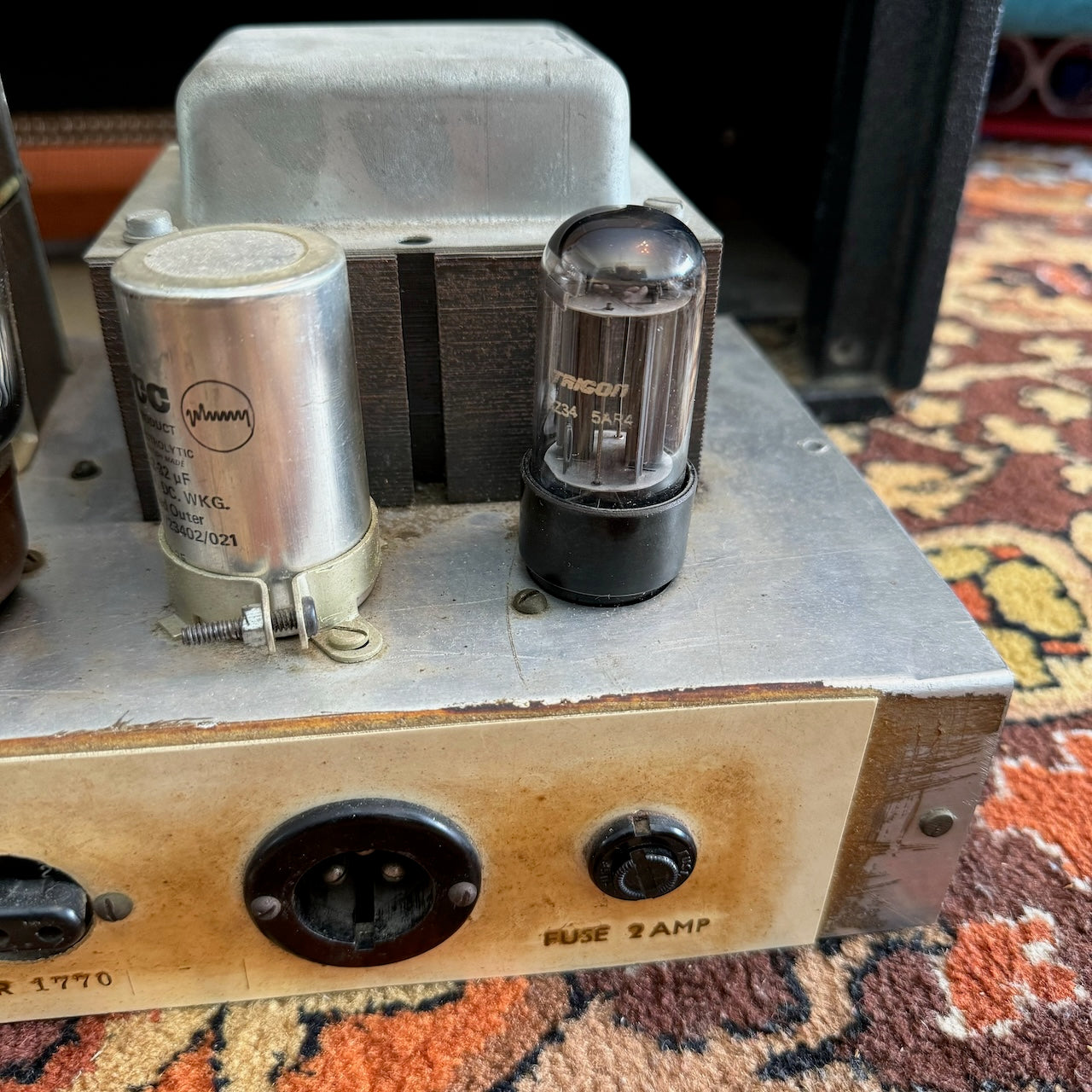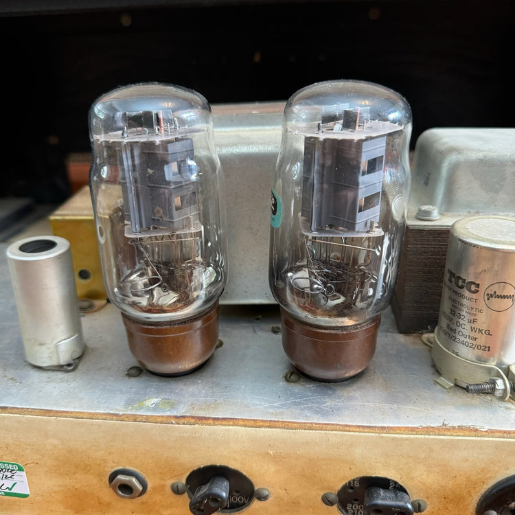 This is a wonderful JTM45 that I was recently contacted about. The owner of many years had decided to finally sell one of his prized possessions. This is one of those that has not been circulated, and comes direct from the original owner. When I got it, I sent it straight up to my tech, who confirmed it was in incredibly well working order. This one has both original transformers - 1202-55 / 784-103 - and the original choke. The pair of original GEC KT66 are there and work perfect, alongside 3x period ECC83 and a slightly later Trigon GZ34.