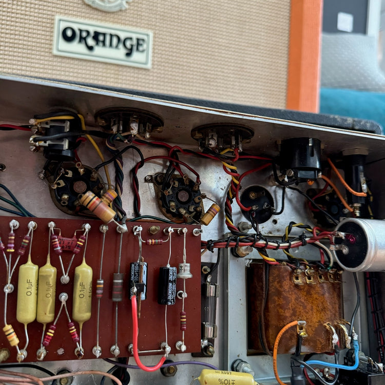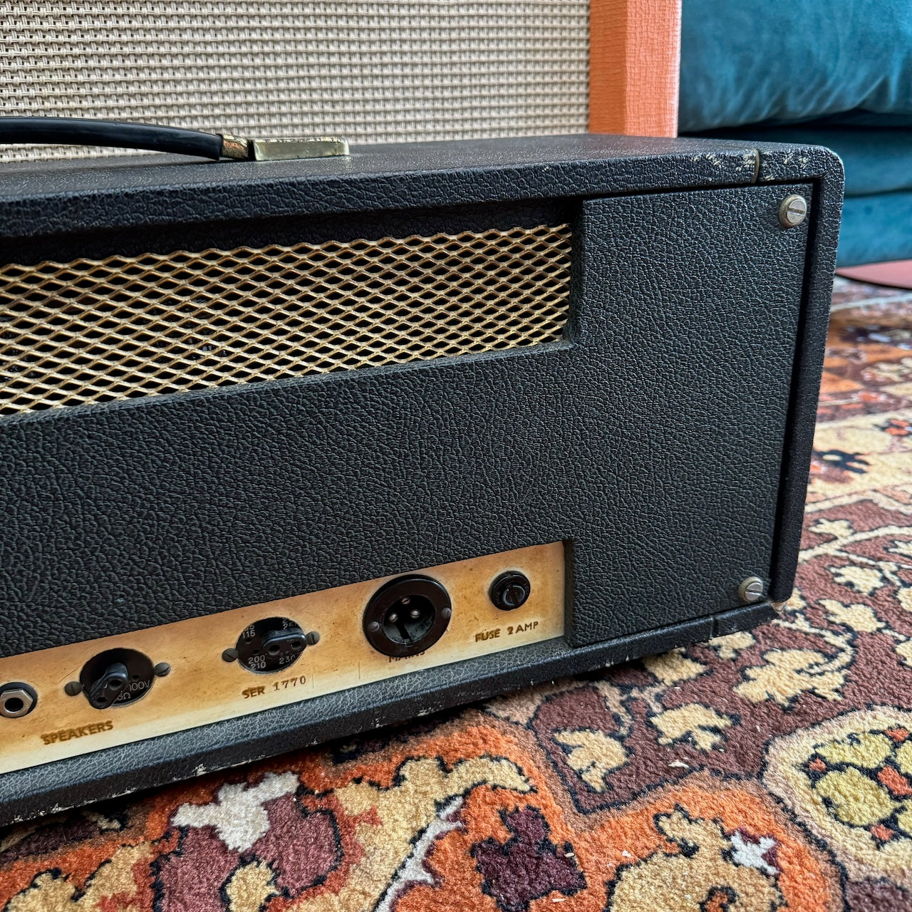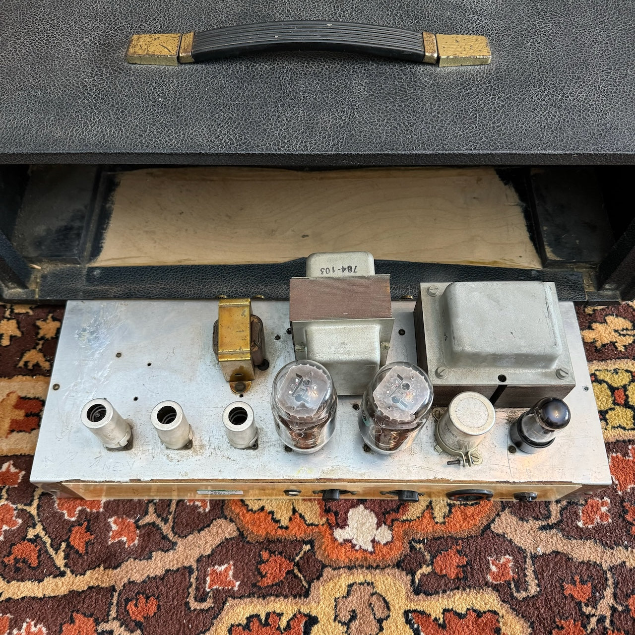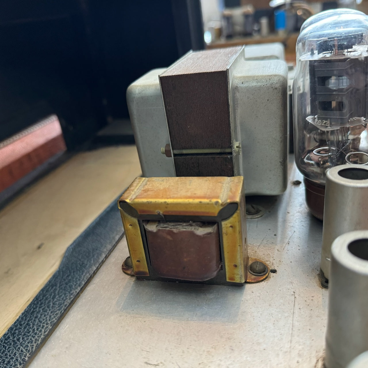 This is a wonderful JTM45 that I was recently contacted about. The owner of many years had decided to finally sell one of his prized possessions. This is one of those that has not been circulated, and comes direct from the original owner. When I got it, I sent it straight up to my tech, who confirmed it was in incredibly well working order. This one has both original transformers - 1202-55 / 784-103 - and the original choke. The pair of original GEC KT66 are there and work perfect, alongside 3x period ECC83 and a slightly later Trigon GZ34.