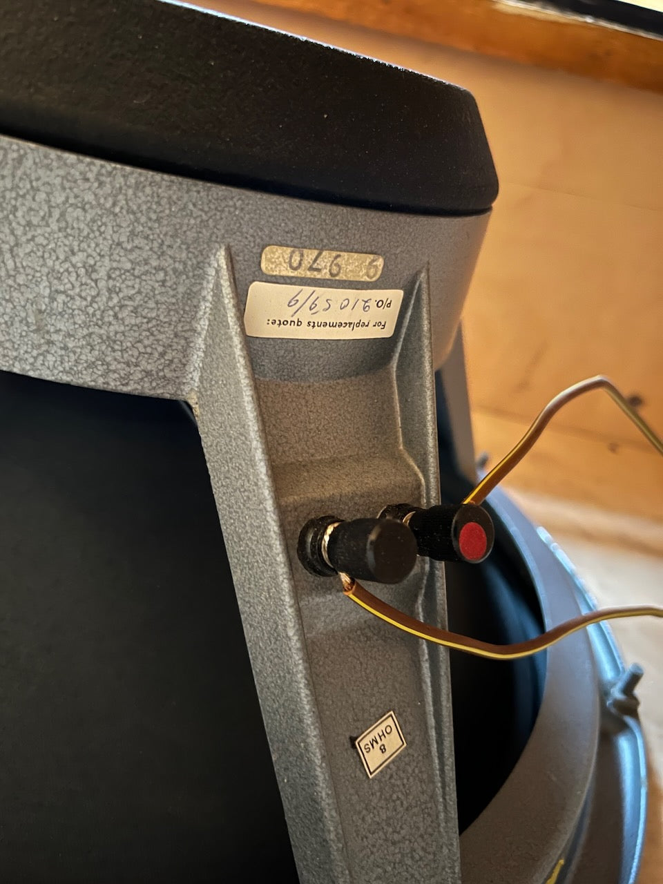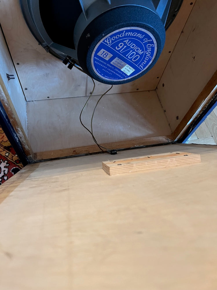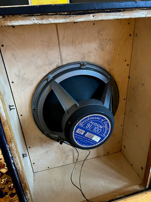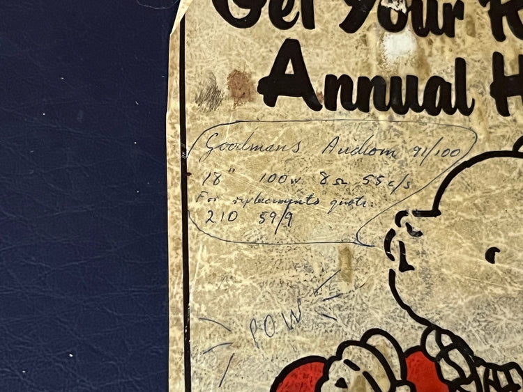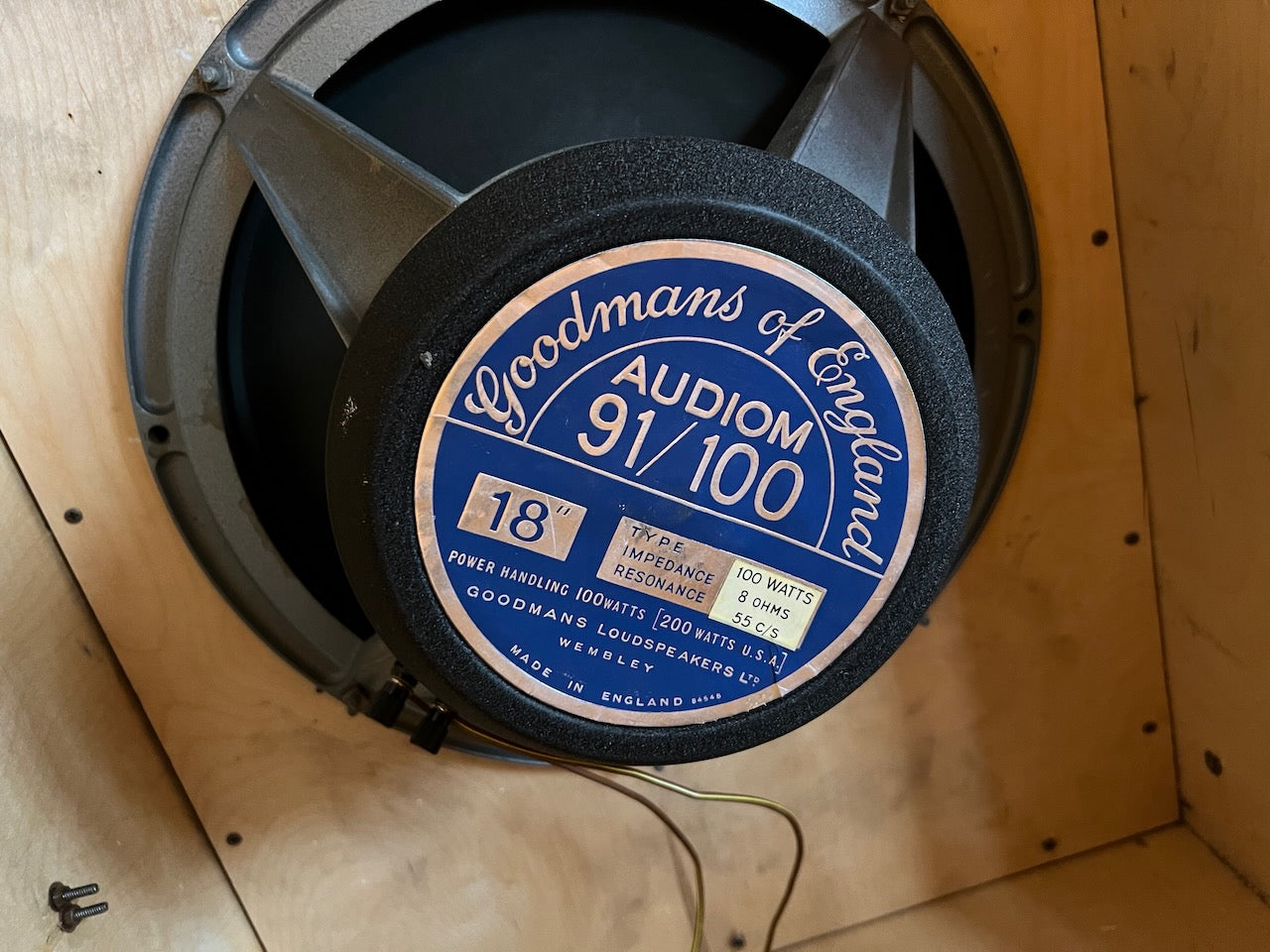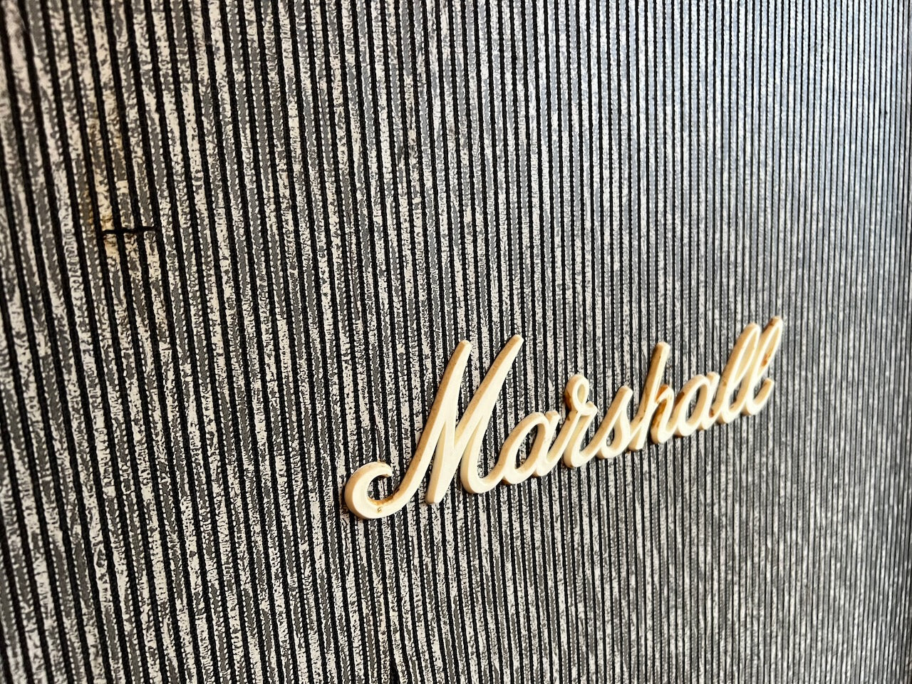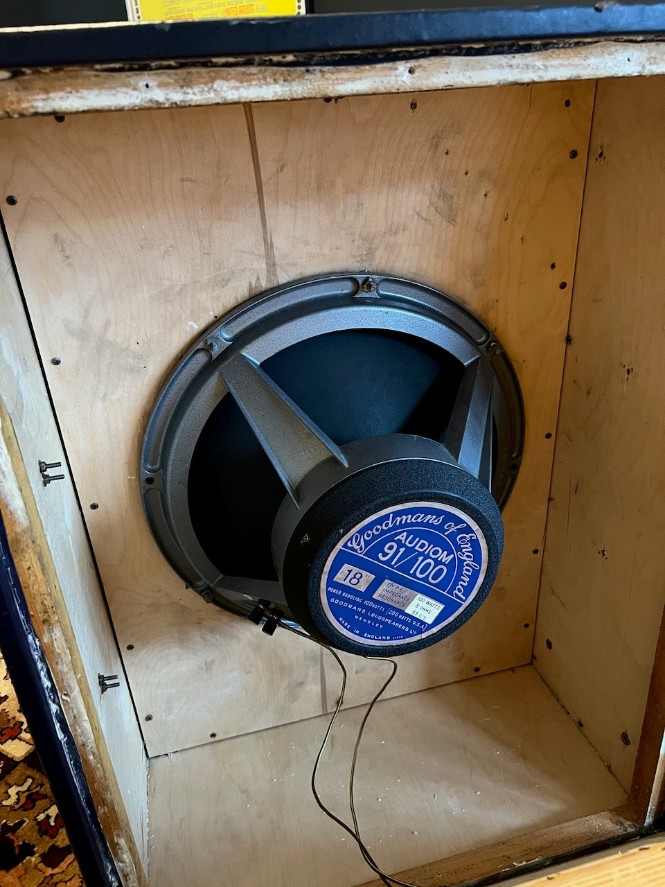 The original Goodmans Audio 91/100 speaker is in wonderful working order. I love the Rupert Bear sticker on the outside, with a hand-written note about the speaker inside to save taking the back off! It was untouched for many many years, and he'd recently pulled it out. You’ll struggle to find a cooler example of a Marshall pinstripe cabinet out there! Please check out the in-depth pictures below as these form part of our description.