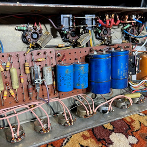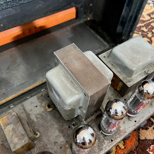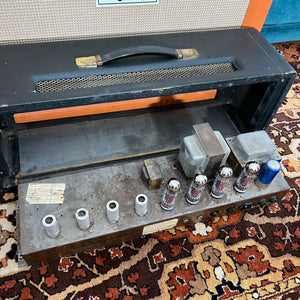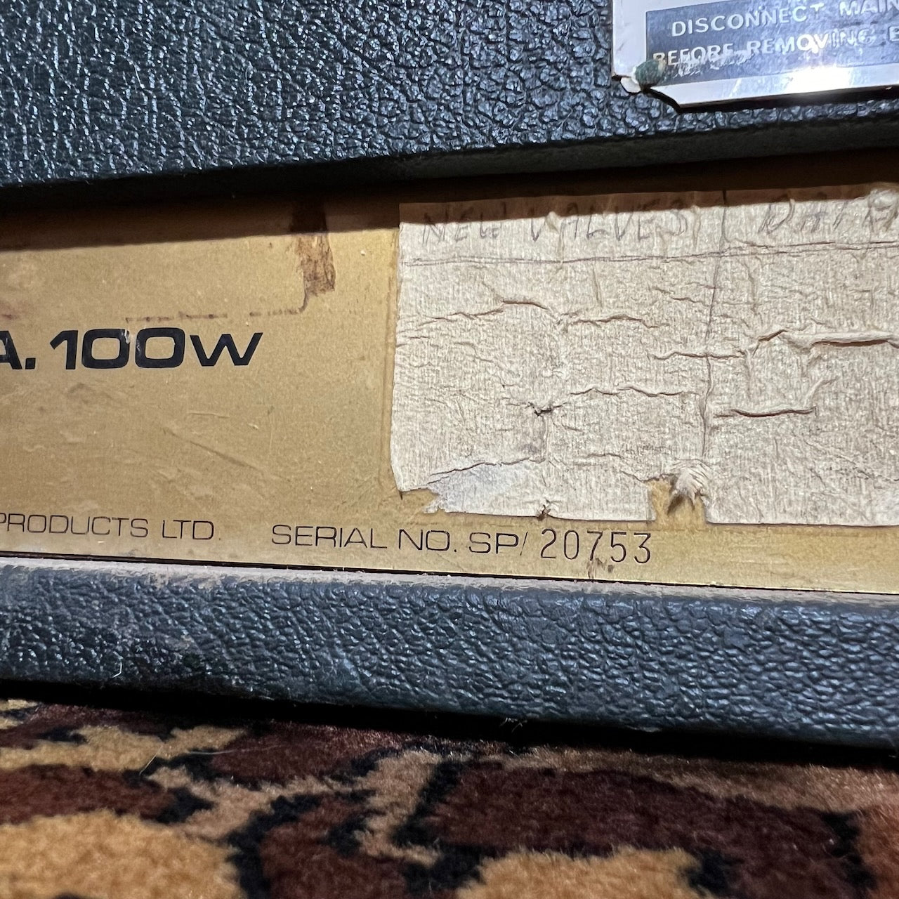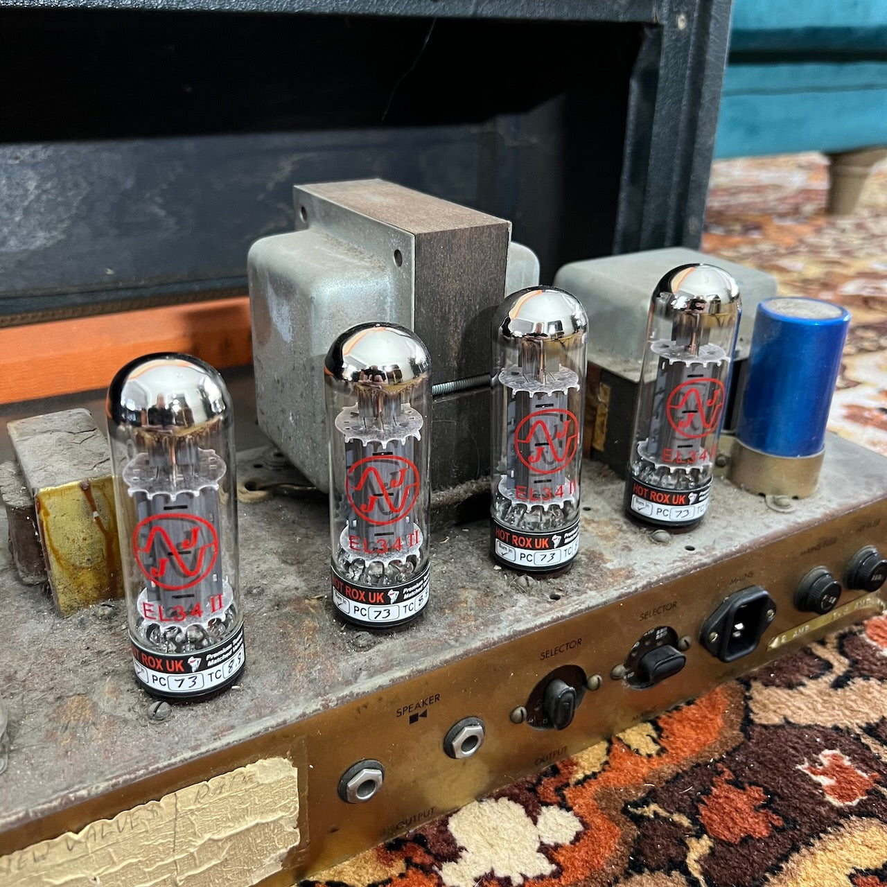 This one in particular is serial number 20753, and has all the original transformers as you can see. The 4x EL34s are newer replacements, and the ECC83s are a mixture of original and replacements. Cosmetically it has been very well used with many scuffs and scrapes to it. I think it has been lightly brushed / varnished over with some black shine in the past, but it is only recognisable on close inspection. Other than this, it really is an exceptional amplifier that is not going to disappoint - a beauty! Please see the pictures below as they form part of my description.