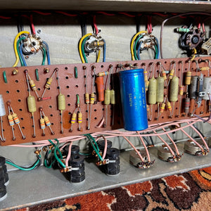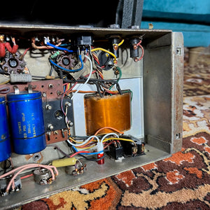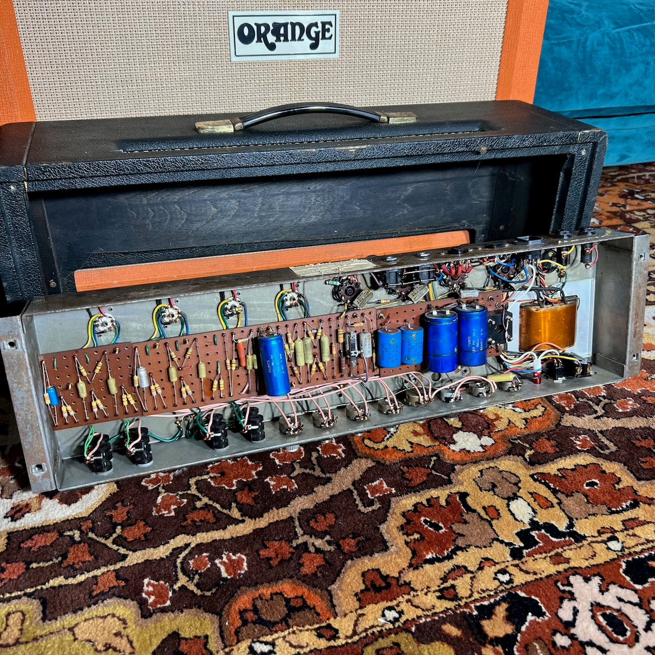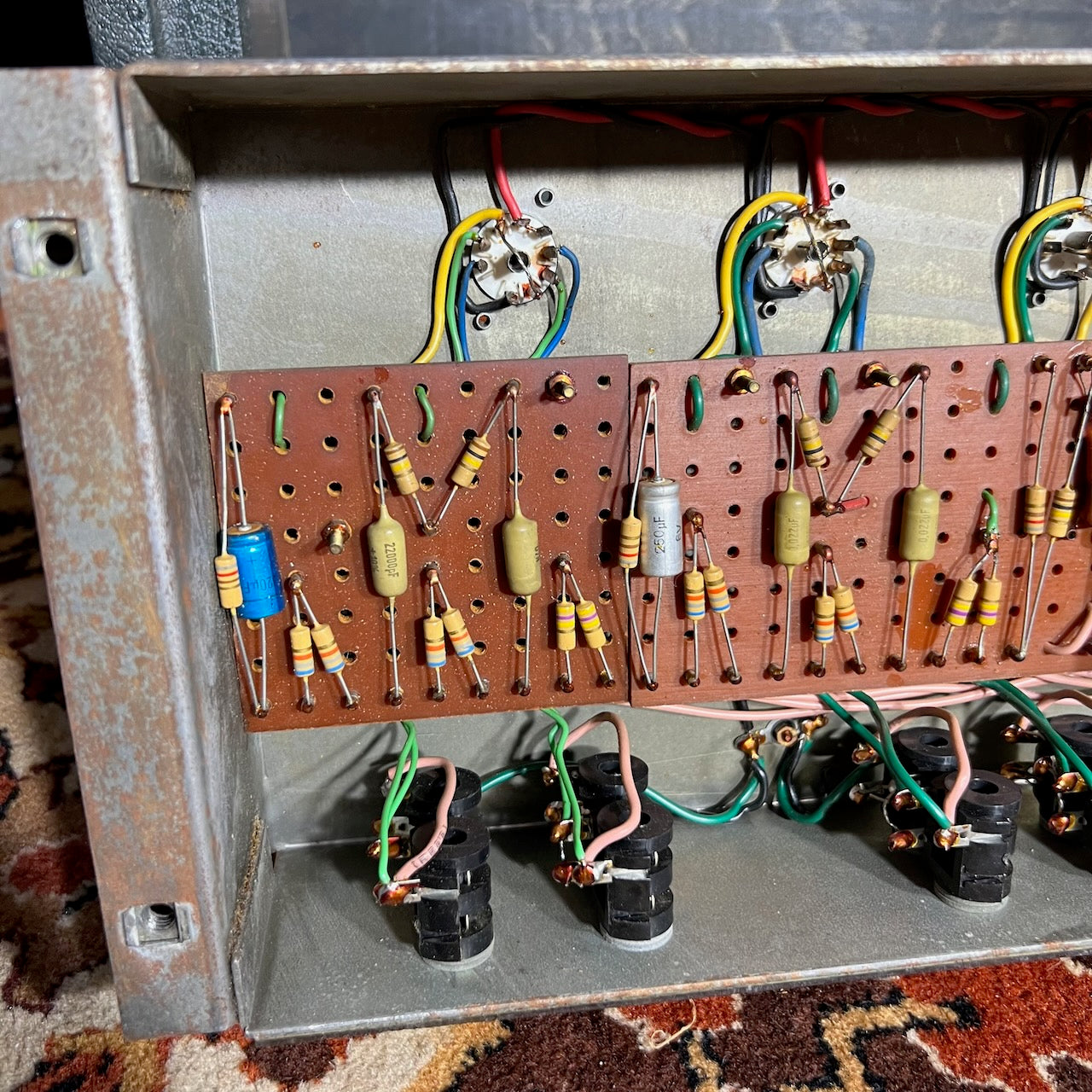 I couldn't believe it when I got the opportunity to buy this beauty. It was sat unused in the North of Scotland for many decades, and I picked it up alongside a stupidly cool Marshall 1x18 pinstripe cabinet. It had been purchased around the area and stayed with the same owner for all these years. One of the first with the Dagnall transformers inside (best known as the circuit version 7a).